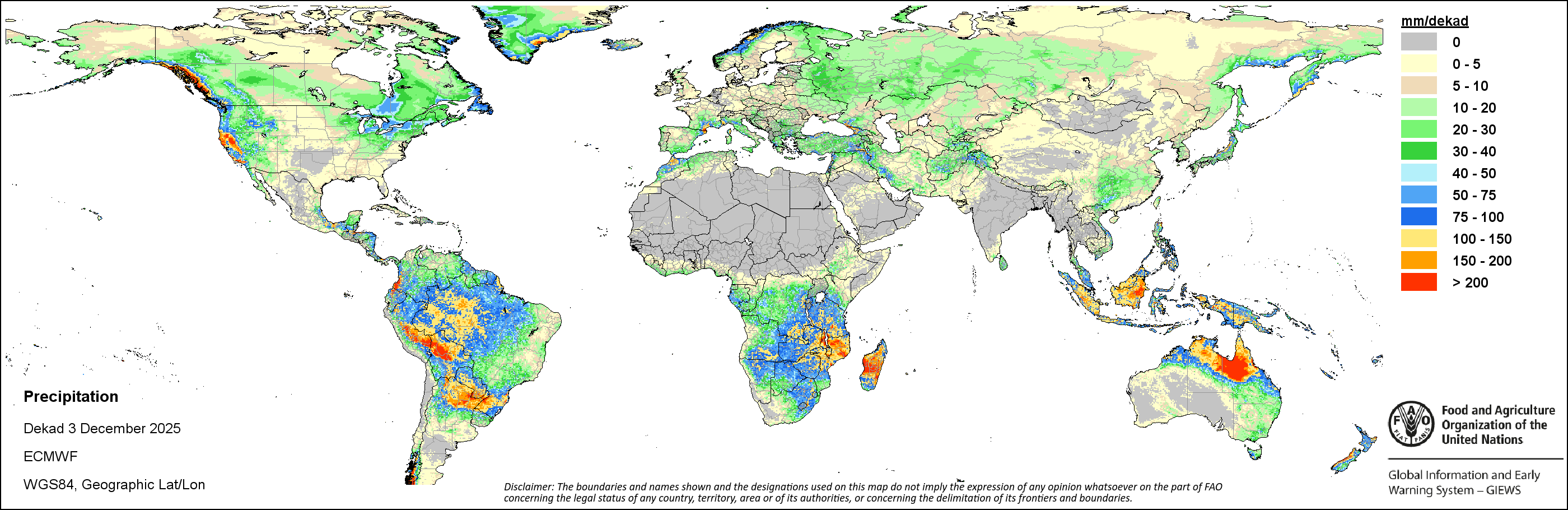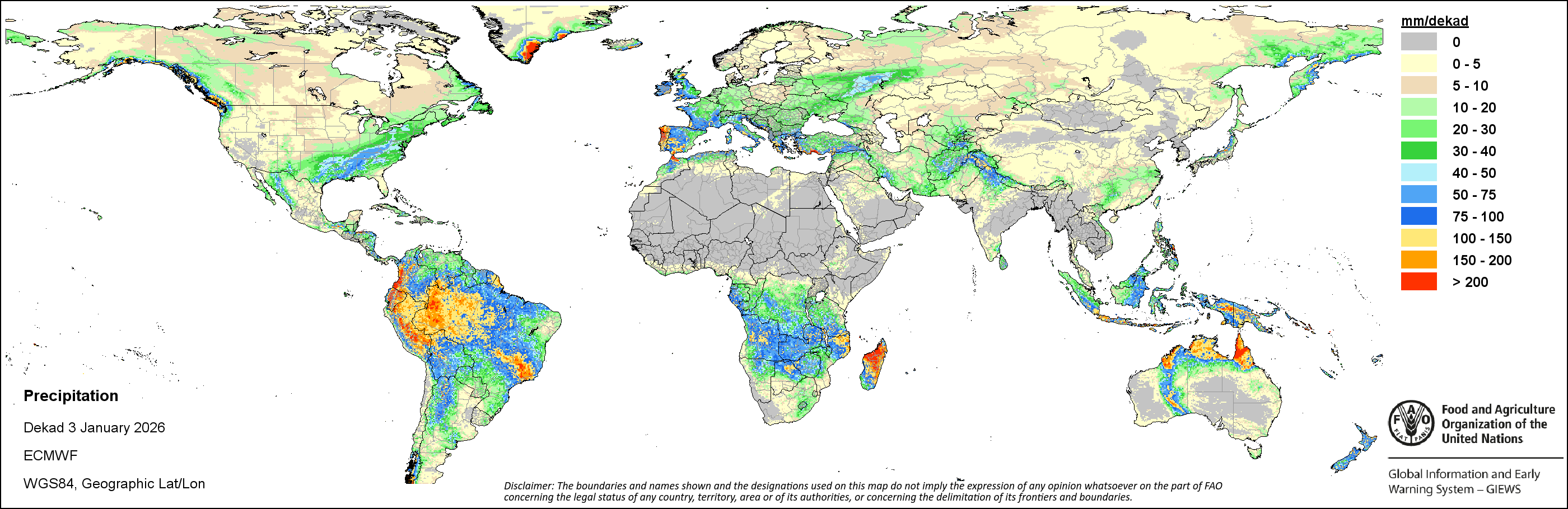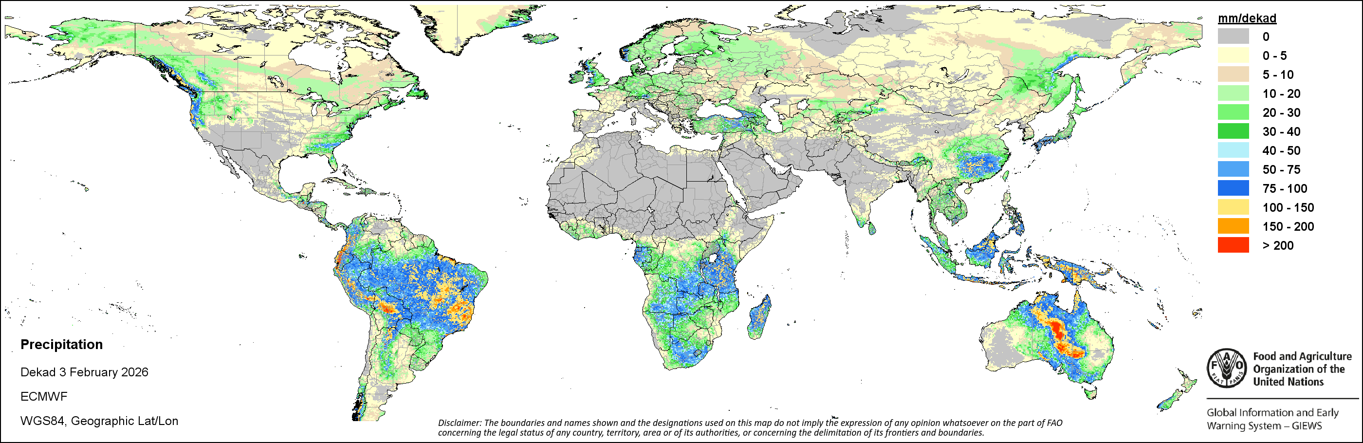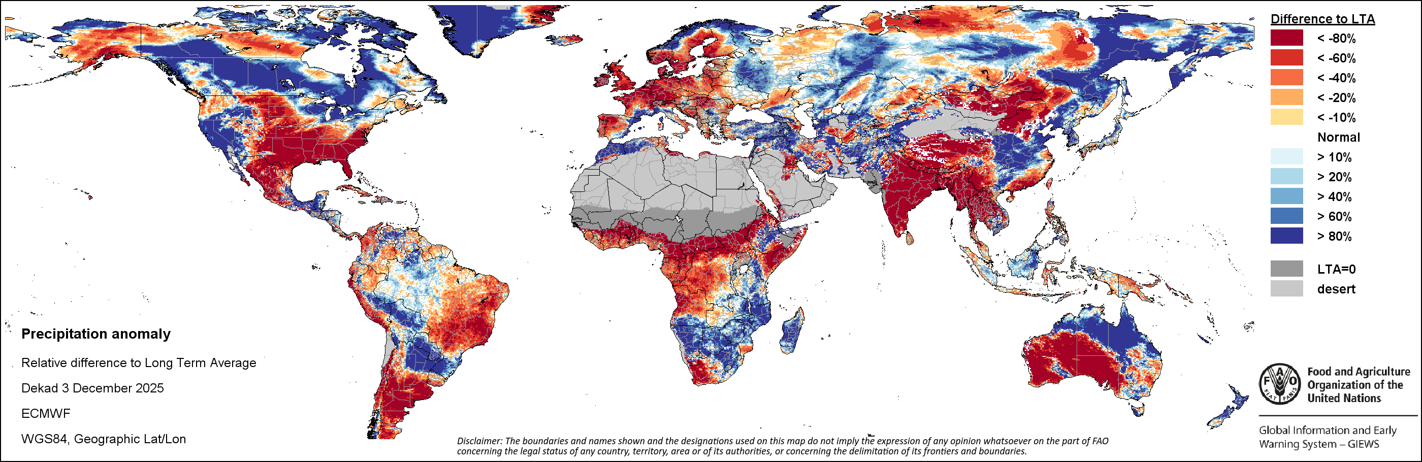 Global Information and Early Warning System on Food and Agriculture (GIEWS) monitors the condition of major foodcrops across the globe to assess production prospects. To support the analysis and supplement ground-based information, GIEWS utilizes remote sensing data that can provide a valuable insight on water availability and vegetation health during the cropping seasons. In addition to rainfall estimates and the Normalized Difference Vegetation Index (NDVI), GIEWS and FAO's OCB Division have developed the Agricultural Stress Index (ASI), a quick-look indicator for the early identification of agricultural areas probably affected by dry spells, or drought in extreme cases.