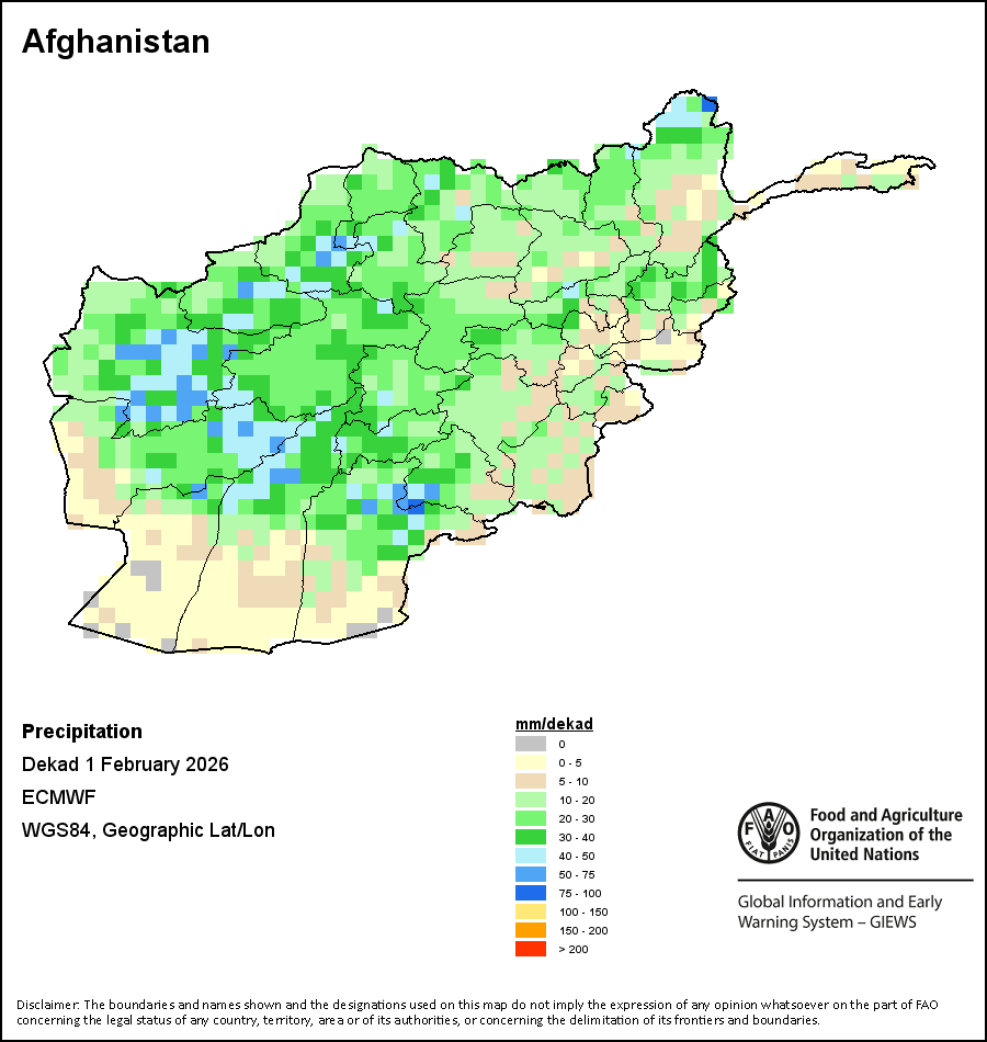 Los mapas y gráficos nacionales representan el último periodo de 36 meses de los indicadores estacionales, de vegetación y de precipitación. Los datos se presentan por periodos de 10 días y por meses. Los tres indicadores de vegetación se basan en datos de vegetación registrados cada diez días por el sensor METOP-AVHRR con una resolución de 1km (2007 y posterior). Los datos con una resolución de 1km del período 1984-2006 se extrapolaron a partir del conjunto de datos NOAA-AVHRR con 16km de resolución. Las estimaciones de precipitación de todos los países africanos (excepto Cabo Verde y Mauricio) se obtienen de NOAA/FEWSNet (16km de resolución), mientras que para los restantes países los datos se obtienen Centro Europeo de Predicción Meteorológica a Plazo Medio (ECMWF siglas en Inglés, 25km de resolución). Debido a la mayor resolución de los indicadores de vegetación (p.ej., NDVI, VHI) en comparación con los indicadores de precipitación de resolución más gruesa, el número de unidades subnacionales para las que se pueden generar estadísticas zonales válidas para los índices de vegetación es mayor que el número de unidades para los indicadores de precipitación en algunos países.