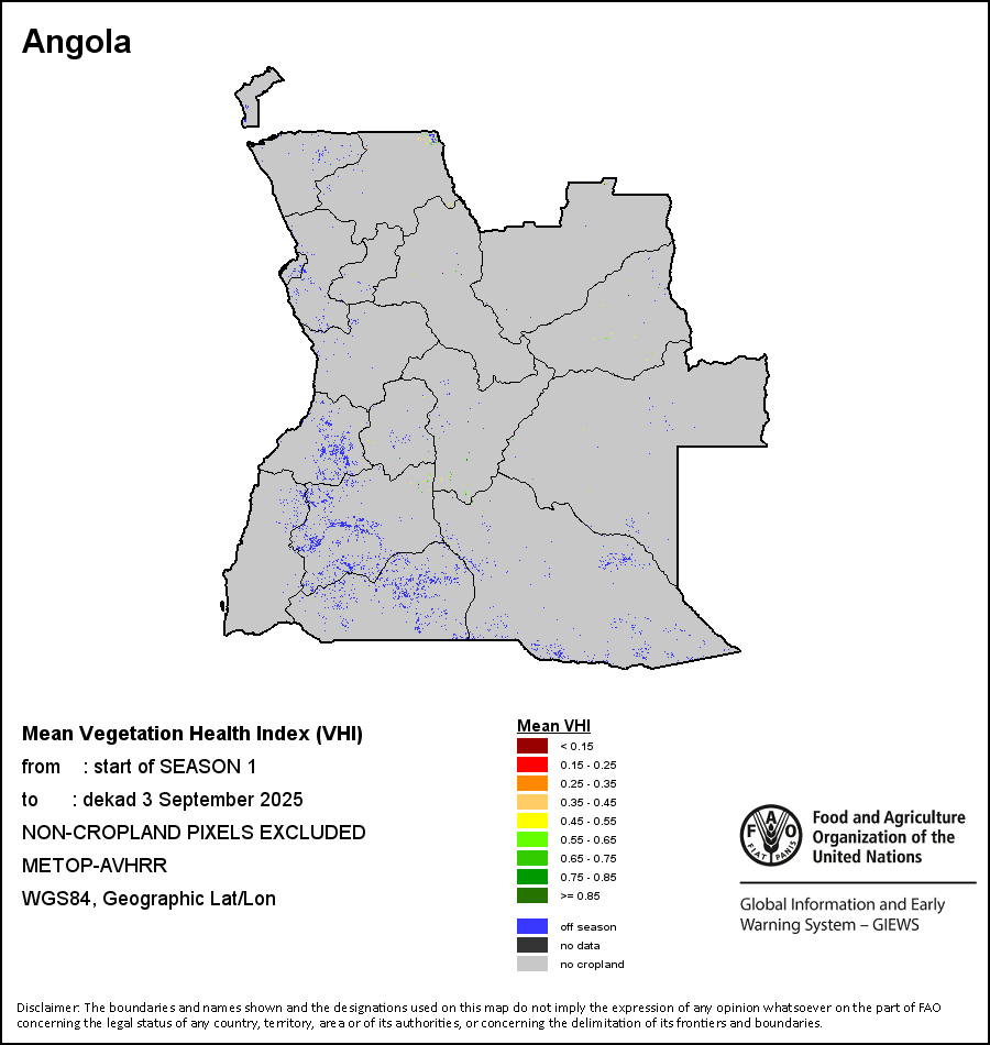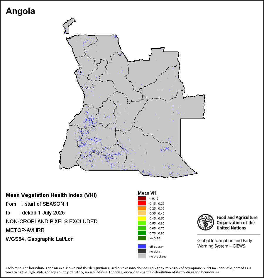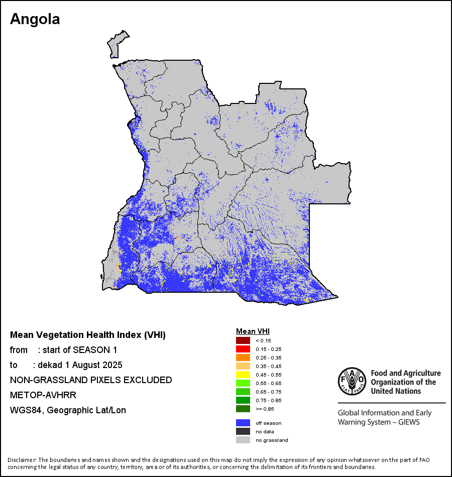 The country level maps and graphs depict the latest 36-month period of the seasonal, vegetation and precipitation indicators. The data is presented by dekad and month.   More