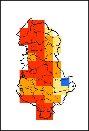 الهطولات المقدرة المتراكمة: متراكمة على المستوى الإداري الأول.