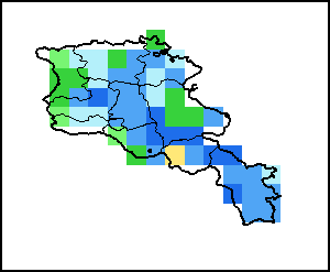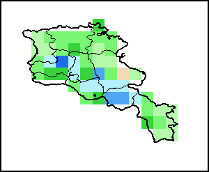 توضح الخريطة الاختلاف بين كمية الهطولات المطرية الراهنة ومعدلها. تقارَن مستويات الهطولات المطرية مع المعدل طويل الأجل الذي يشير إلى الفترة ما بين 1989-2015.