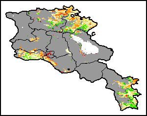 Agricultural droughts are classified by their intensity and are categorized into four classes: Extreme, Severe, Moderate or Mild. The intensity of drought is calculated through the Weighted Mean Vegetation Health Index, indicating that the poorer the vegetation health the more severe the drought. The Annual summary of Drought Intensity allows the user to assess the overall intensity of drought for an entire growing season.