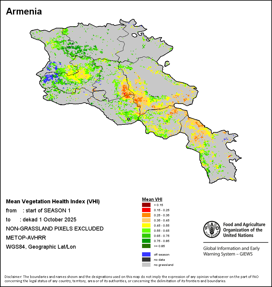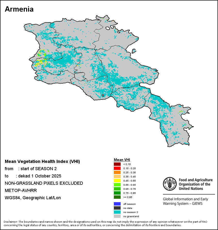 国别地图和图表显示的是最近36个月期间的季节、植被和降水指标。数据按每10天和每月呈现。   更多