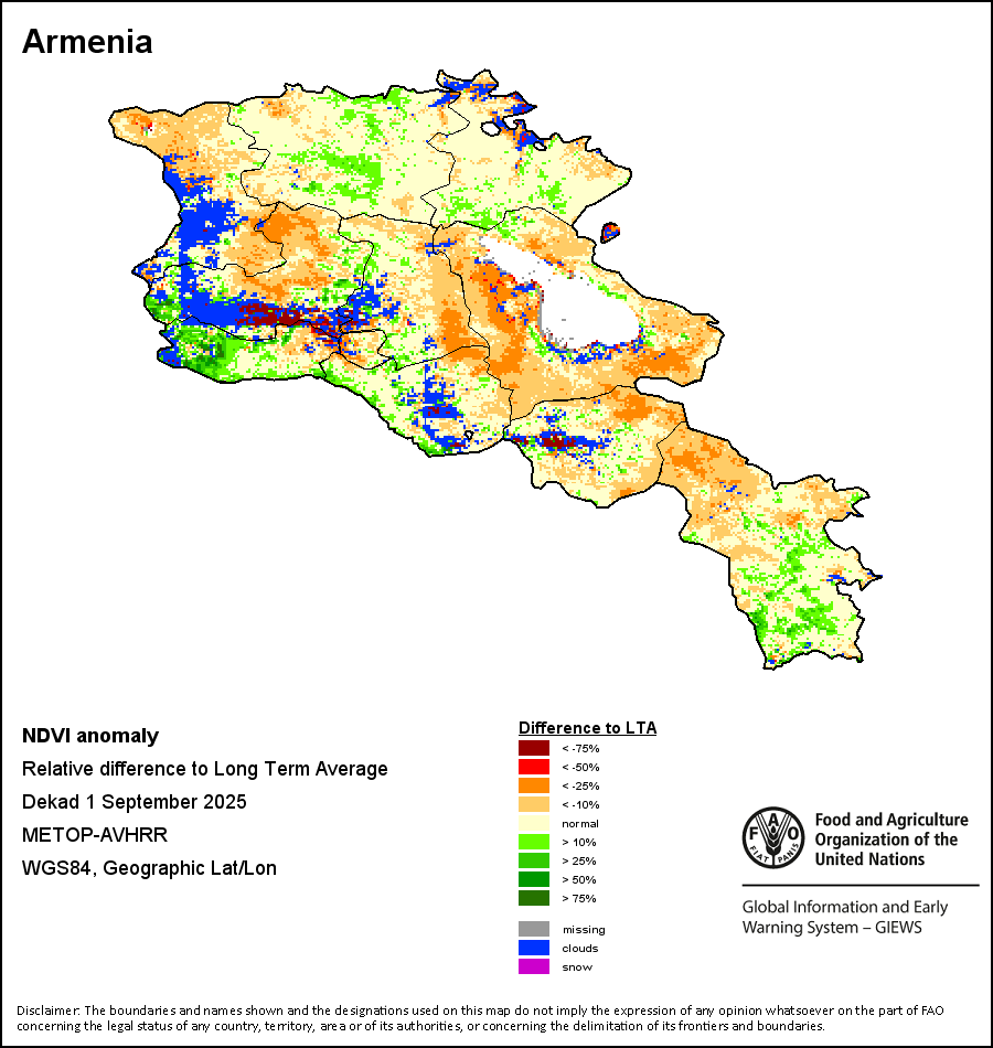所有三项植被指标都是基于来自METOP-AVHRR遥感卫星分辨率1千米的10天(旬)植被数据(2007年及以后)得出的。1984-2006年期间的1千米分辨率数据得自NOAA-AVHRR16千米分辨率数据集。所有非洲国家的降水量估算(除佛得角和毛里求斯外)均取自NOAA/FEWSNet,其他国家则取自ECMWF。