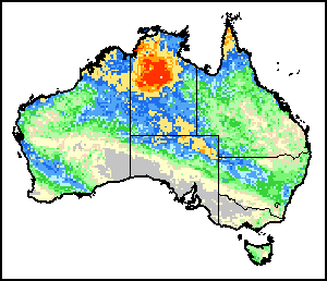 Сезонное развитие основано на среднем показателе длительных наблюдений фенологических этапов развития растений, один пиксель - для каждого этапа. Это упрощение подразумевает, что фенология посевов/пастбищ статична, поэтому вегетационный сезон развивается в одинаковом темпе каждый год.