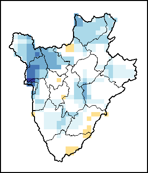 El Índice Normalizado Diferencial de la Vegetación (NDVI, por sus siglas en inglés) mide el “verdor” de la cubierta vegetal, y se utiliza como indicador de la densidad y salud de la vegetación. Los valores del NDVI oscilan entre +1 y -1. Los valores positivos elevados corresponden a vegetación densa y saludable, mientras que los valores bajos y/o negativos reflejan condiciones deficientes de vegetación o cubierta vegetal escasa. La anomalía del NDVI representa la variación del periodo actual de 10 días con respecto al valor medio a largo plazo. Un valor positivo (por ejemplo, 20 por ciento) implicaría mejores condiciones de vegetación con respecto a la media, mientras que un valor negativo (por ejemplo, -40 por ciento) indicaría condiciones de vegetación comparativamente peores.