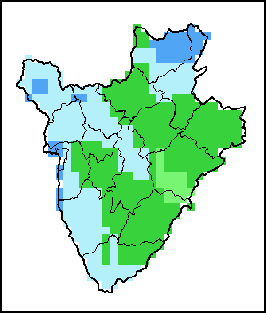Les cartes et les graphiques au niveau des pays illustrent les indicateurs d’avancement de la campagne, de végétation et de pluviométrie au cours des 36 derniers mois. Les données sont présentées par décade et par mois. Les trois indicateurs de végétation sont basés sur les données relatives à la végétation pour 10 jours (décade) du capteur Metop-AVHRR par pixel de 1 km (à partir de 2007). Les données à 1 km de résolution pour la période 1984-2006 ont été dérivées des données du NOAA-AVHRR à 16 km de résolution. - Les estimations concernant les précipitations pour tous les pays africains (à l'exception du Cap Vert et de Maurice) proviennent du NOAA/FEWSNet, tandis que les données concernant les autres pays sont obtenues à partir du CEPMMT. Compte tenu de la résolution plus élevée des indicateurs de végétation (ex. NDVI, VHI) par rapport à celle des indicateurs de précipitations, plus grossiers, le nombre d’unités infranationales pour lesquelles des statistiques zonales valides peuvent être produites à partir des indices de végétation est, dans certains pays, supérieur à celui obtenu à partir des indicateurs de précipitations.