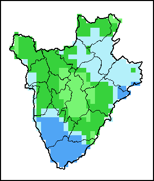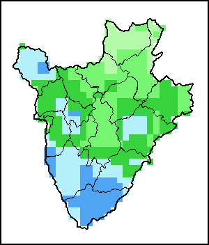 国别地图和图表显示的是最近36个月期间的季节、植被和降水指标。数据按每10天和每月呈现。 所有三项植被指标都是基于来自METOP-AVHRR遥感卫星分辨率1千米的10天(旬)植被数据(2007年及以后)得出的。1984-2006年期间的1千米分辨率数据得自NOAA-AVHRR16千米分辨率数据集。所有非洲国家的降水量估算(除佛得角和毛里求斯外)均取自NOAA/FEWSNet (16千米分辨率),其他国家则取自ECMWF(25千米分辨率)。 由于植被指标(如NDVI、VHI)的空间分辨率高于降水指标,因此,在部分国家能够通过有效分区统计数据计算植被指标的次国家级单元数量,超过能够以相同方式计算降水指标的次国家级单元数量。