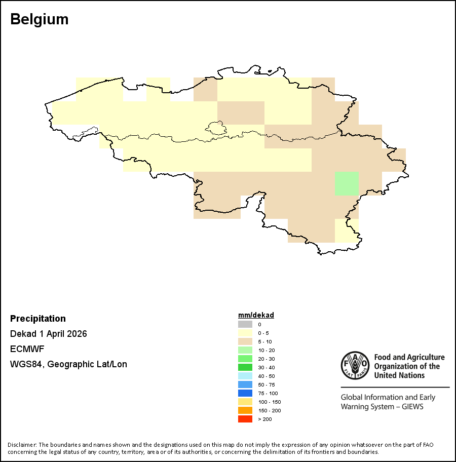На карте изображены кумулятивные объемы осадков в декаду (10-дневный период). Оценки атмосферных осадков для всех африканских стран (за исключением Кабо-Верде и Маврикия) получены из системы NOAA/Системы раннего предупреждения об опасности голода, а по остальным странам данные получены из системы ECMWF.