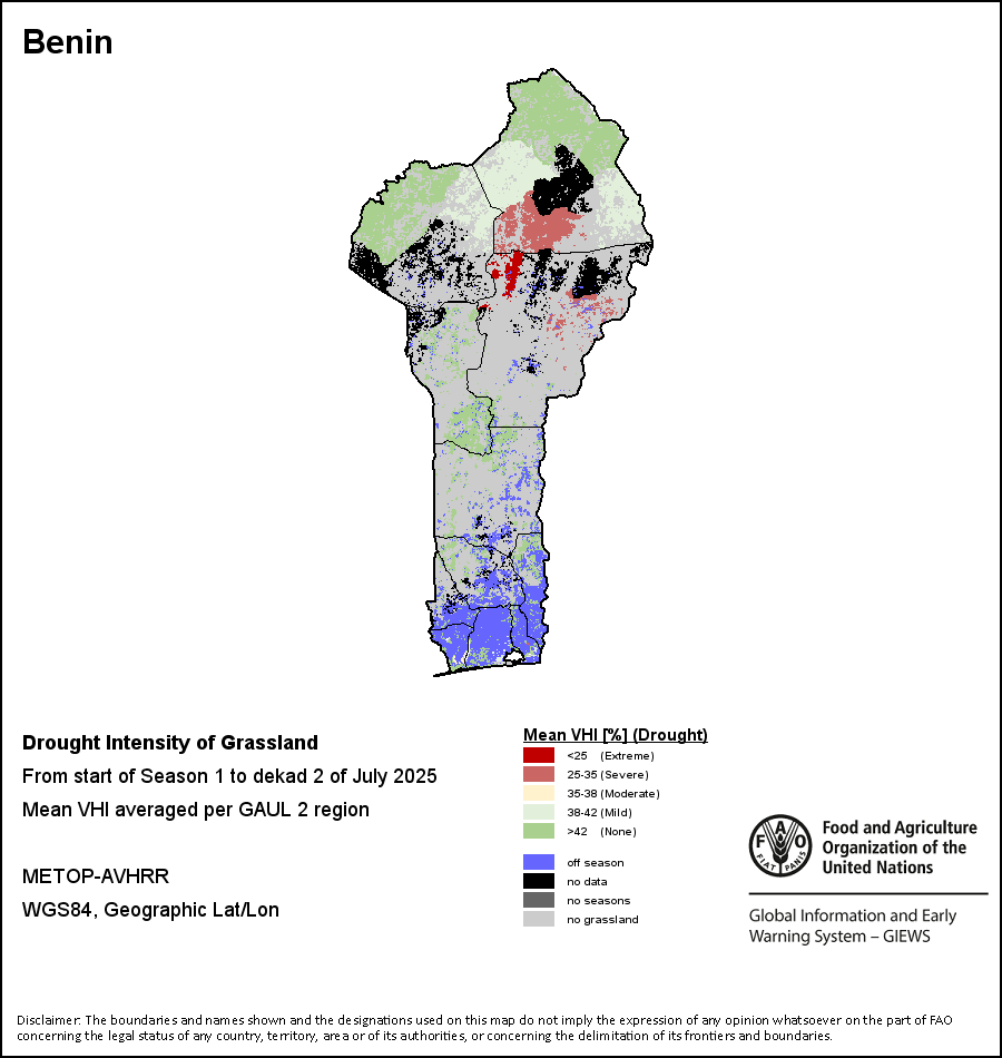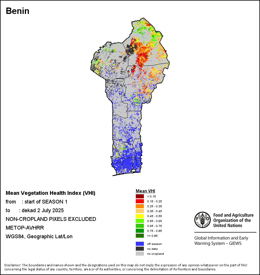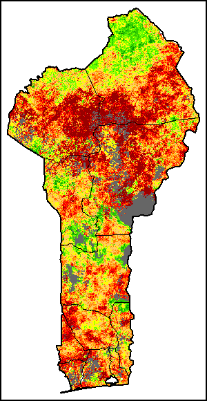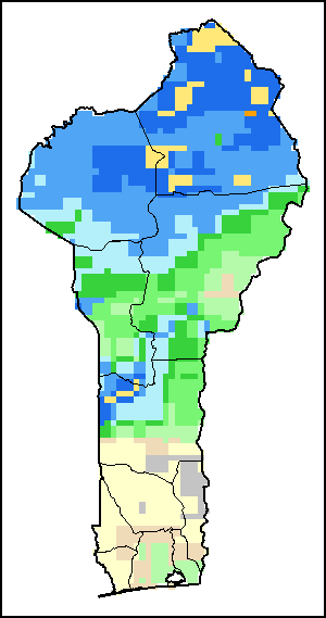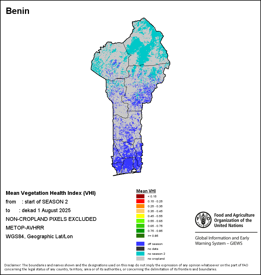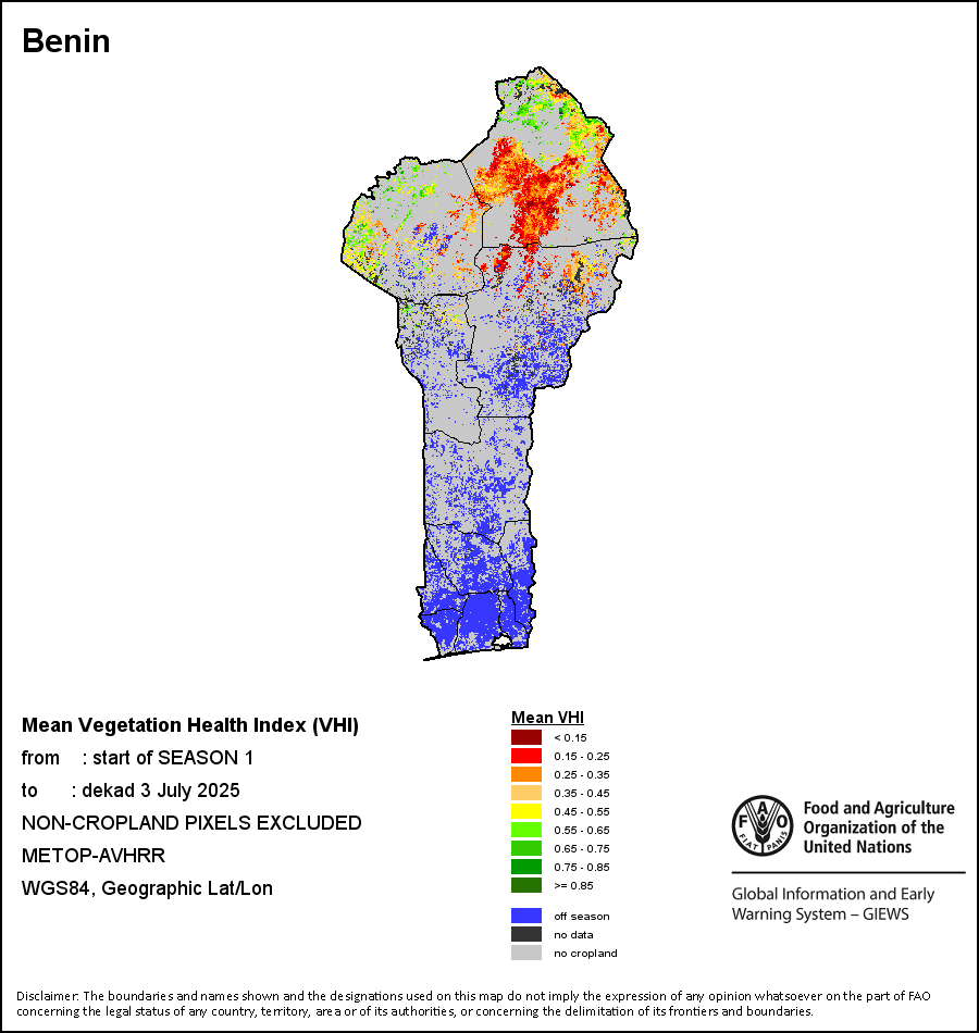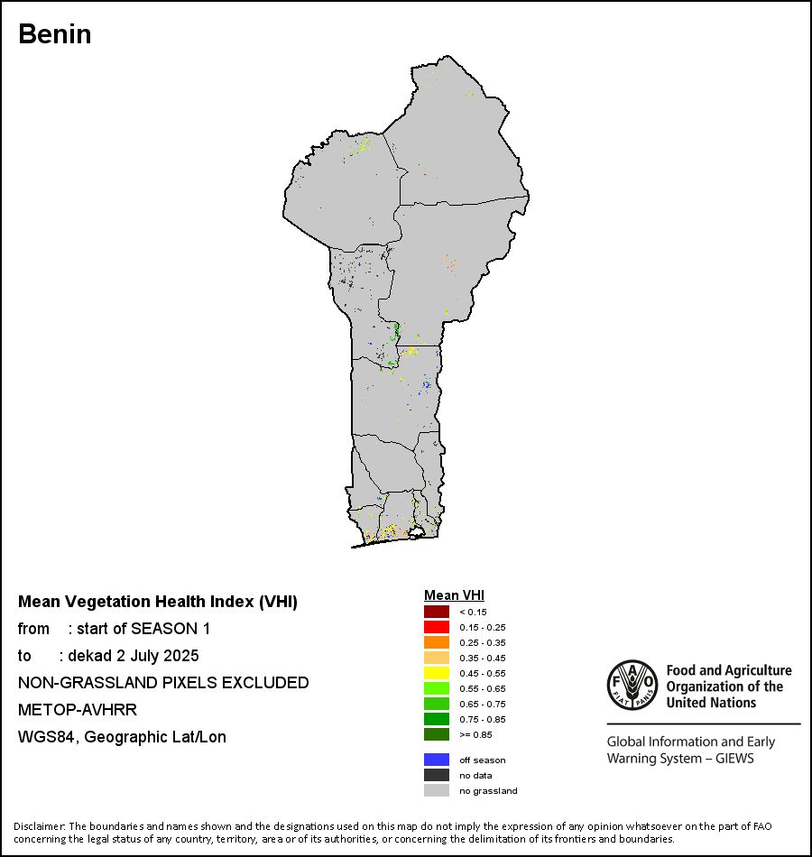The country level maps and graphs depict the latest 36-month period of the seasonal, vegetation and precipitation indicators. The data is presented by dekad and month.   More