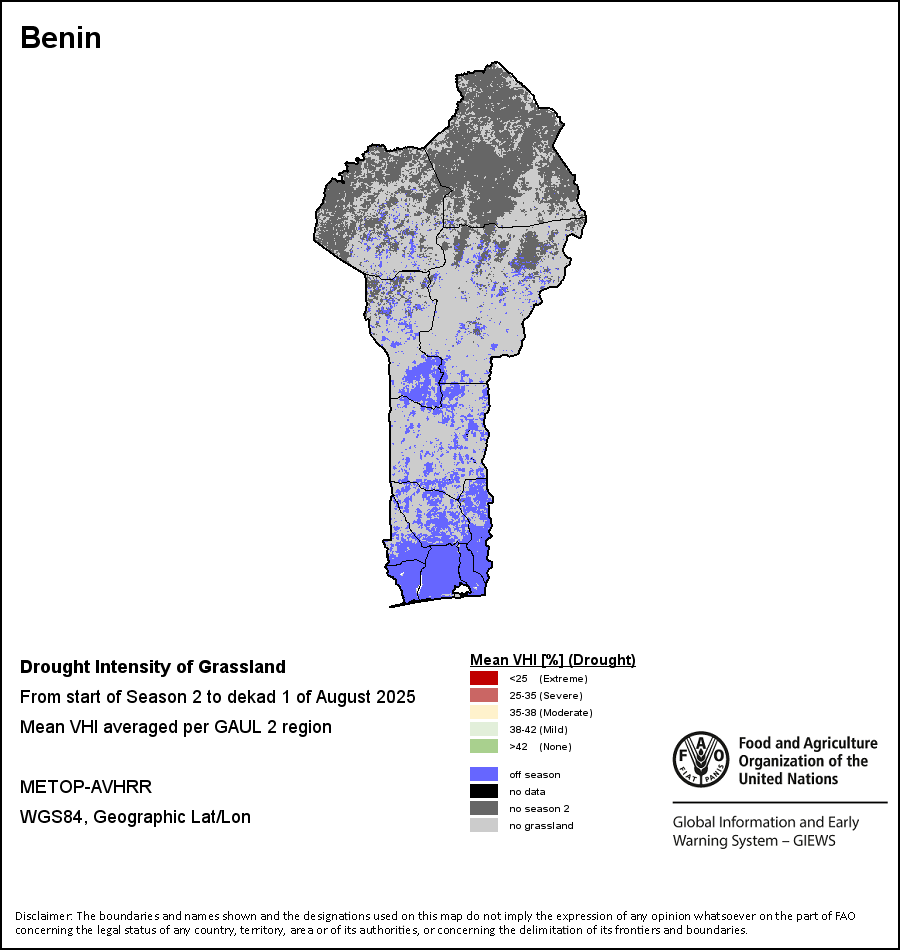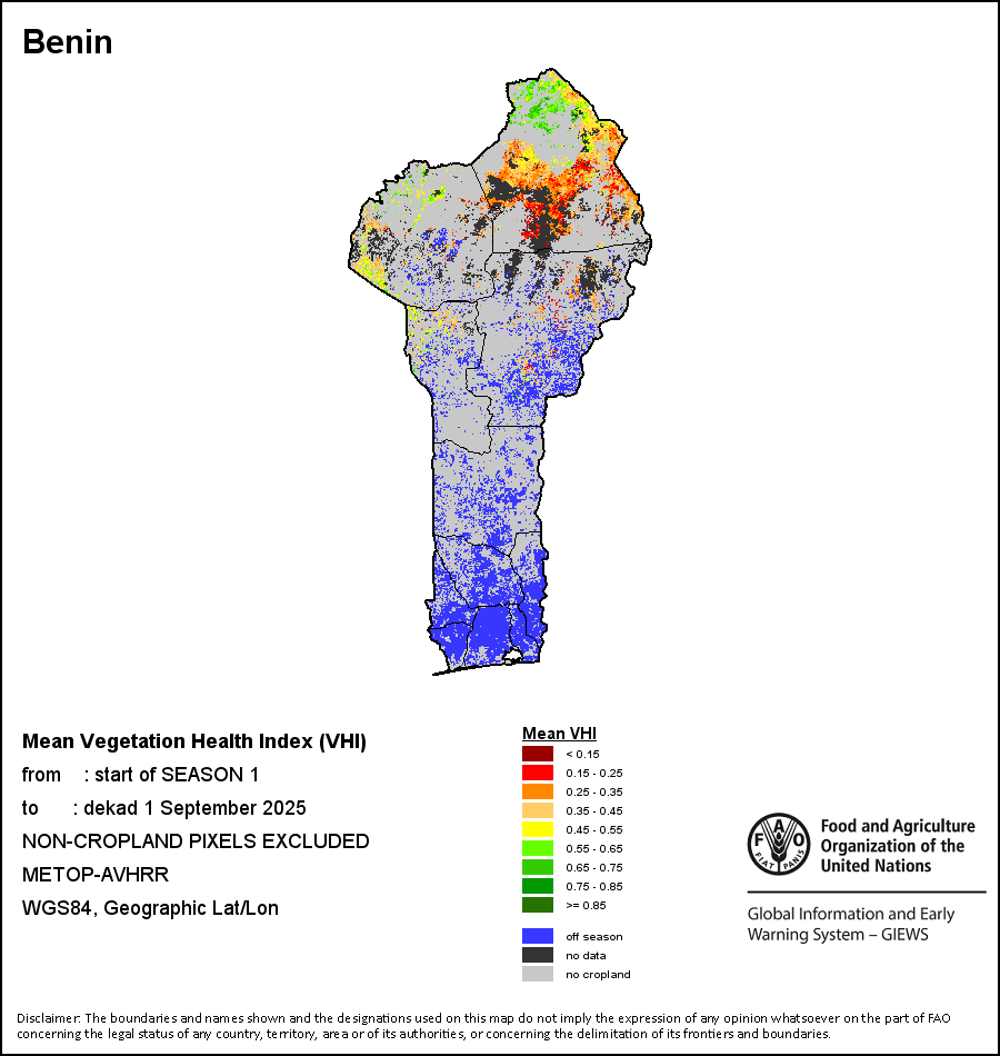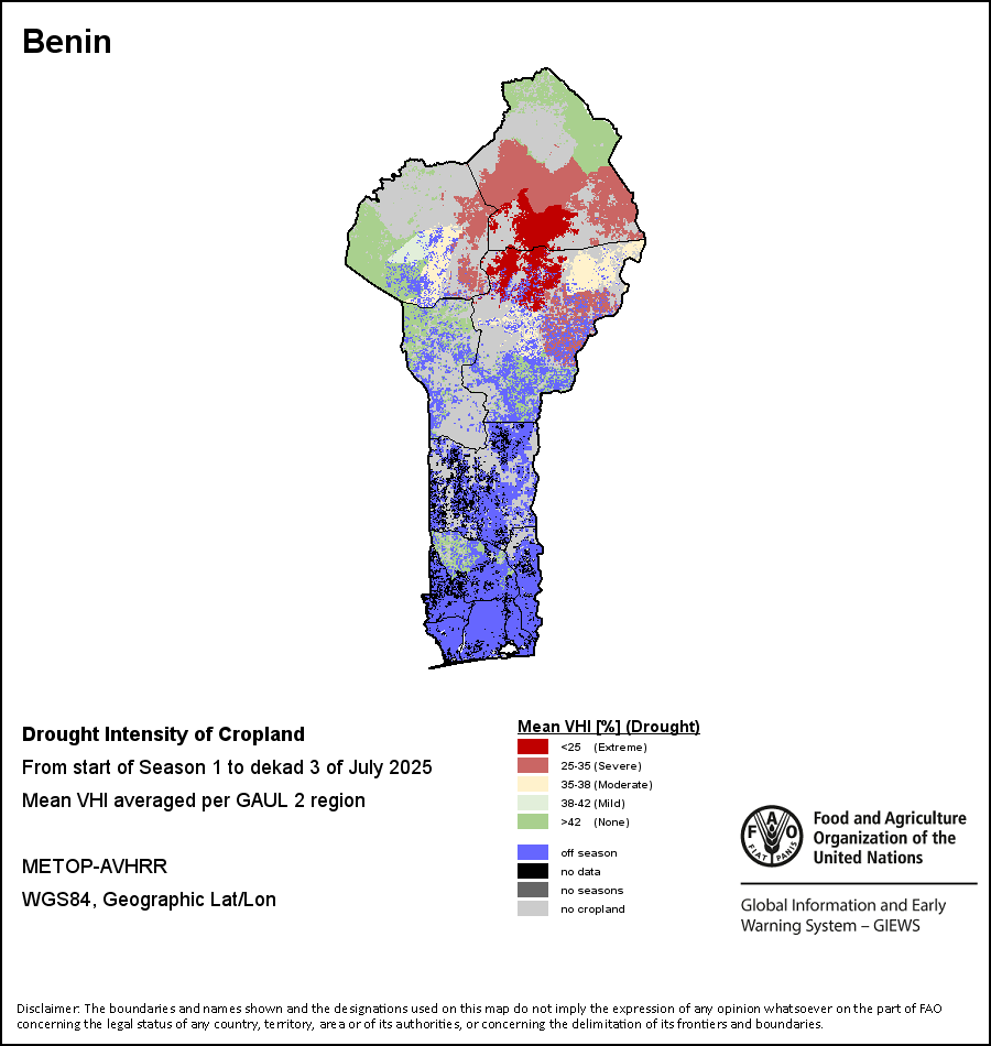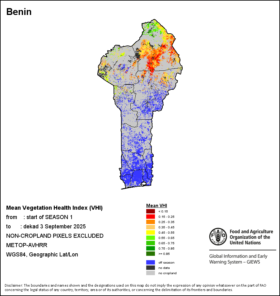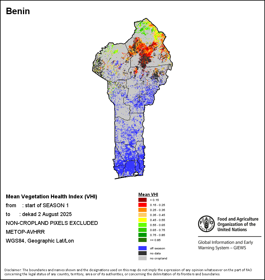 The country level maps and graphs depict the latest 36-month period of the seasonal, vegetation and precipitation indicators. The data is presented by dekad and month.   More