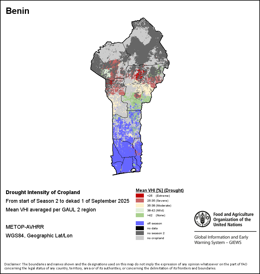 The boundaries and names shown and the designations used on the maps do not imply the expression of any opinion whatsoever on the part of FAO concerning the legal status of any country, territory, city or area or of its authorities, or concerning the delimitation of its frontiers and boundaries.
