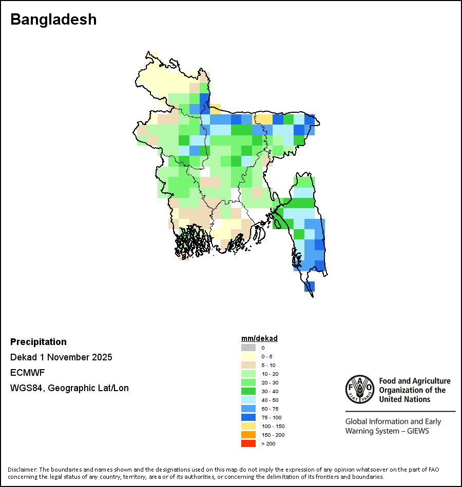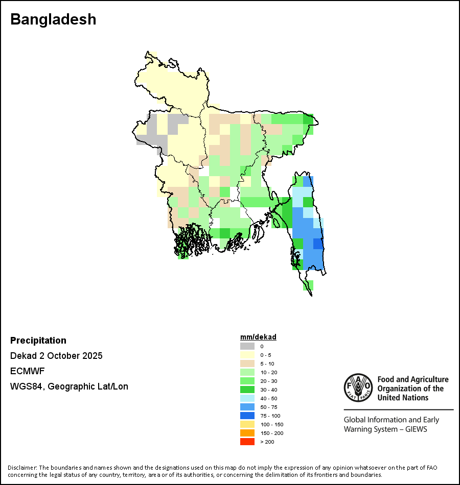 The boundaries and names shown and the designations used on the maps do not imply the expression of any opinion whatsoever on the part of FAO concerning the legal status of any country, territory, city or area or of its authorities, or concerning the delimitation of its frontiers and boundaries.