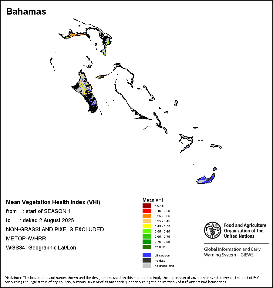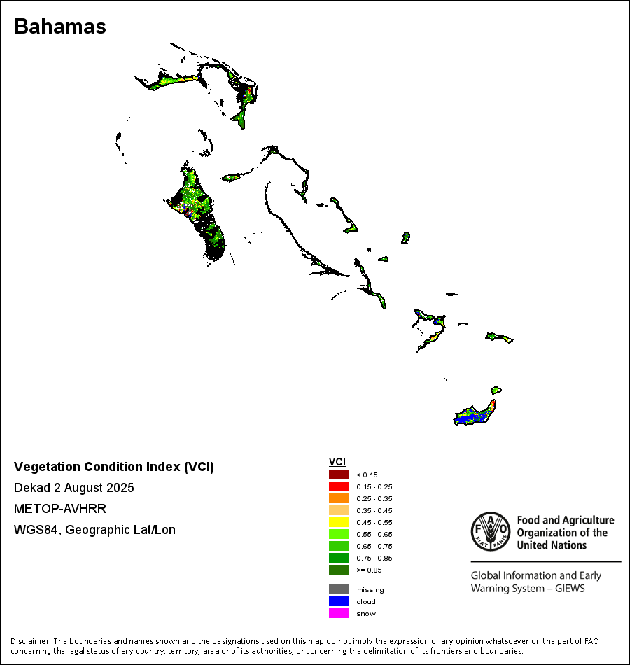 所有三项植被指标都是基于来自METOP-AVHRR遥感卫星分辨率1千米的10天(旬)植被数据(2007年及以后)得出的。1984-2006年期间的1千米分辨率数据得自NOAA-AVHRR16千米分辨率数据集。所有非洲国家的降水量估算(除佛得角和毛里求斯外)均取自NOAA/FEWSNet,其他国家则取自ECMWF。
