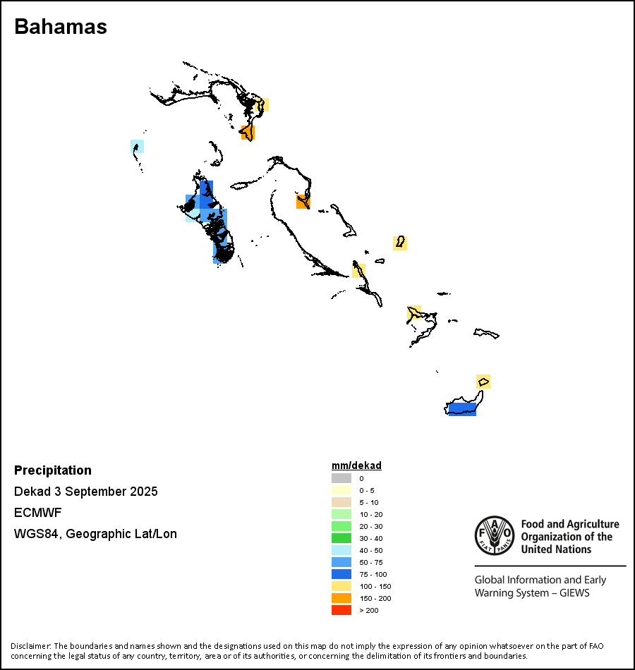 该图谱显示了每一旬(十天)的累积降水量。 所有非洲国家的降水量估算(除佛得角和毛里求斯外)均取自NOAA/FEWSNet,其他国家则取自ECMWF。