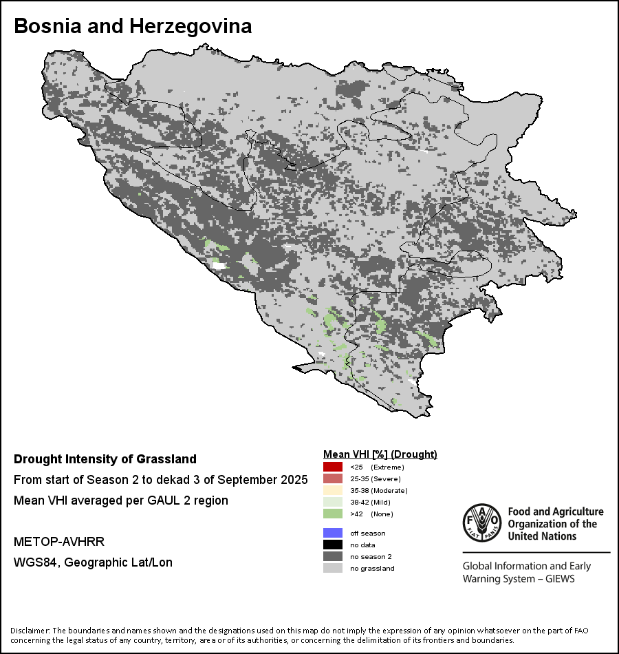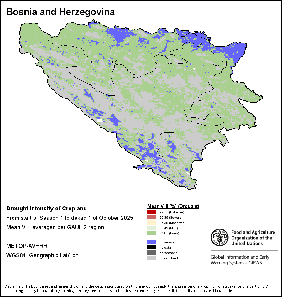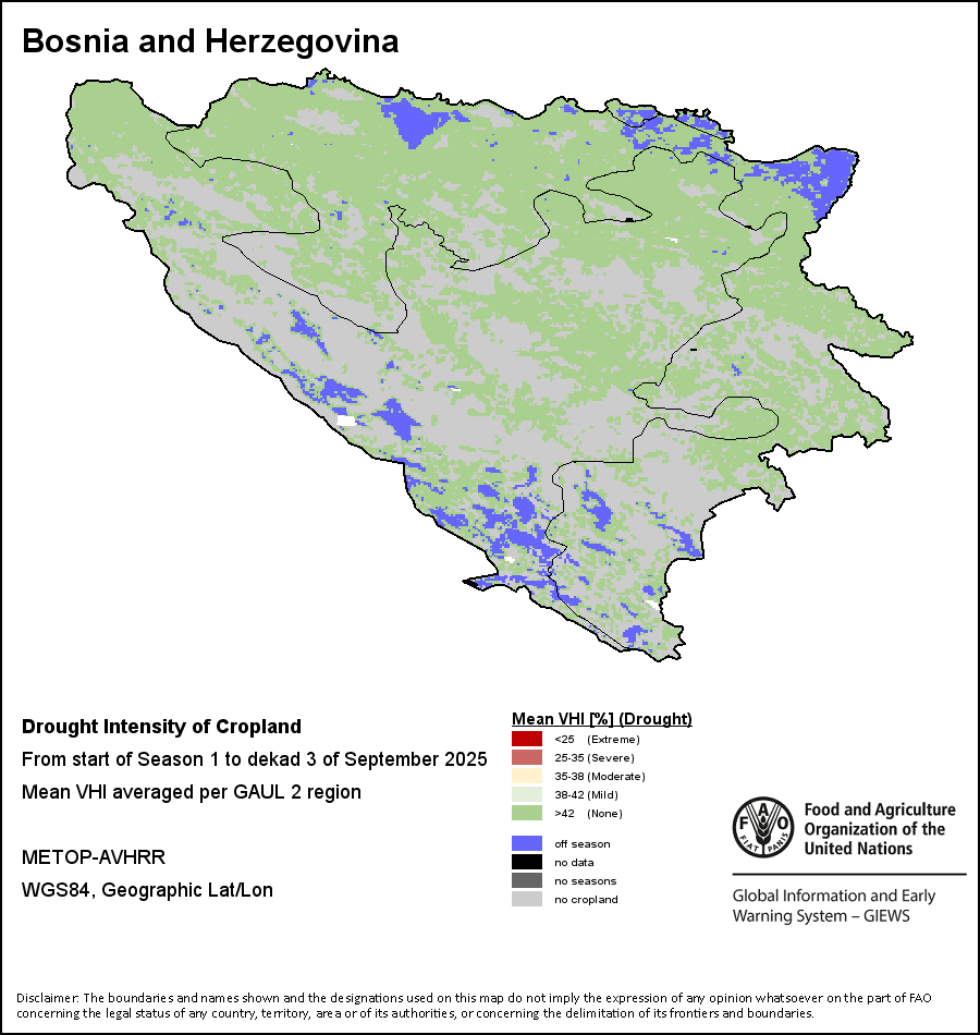 农业干旱依据其强度划分为四类:极端、严重、重度或轻度。干旱的强度通过各全球行政单位分层制度二级区域(GAUL 2)地区累积加权平均植被健康指数计算得出,意味着植被健康状况越差旱情就越严重。