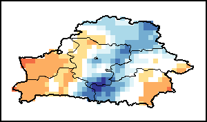 该图谱显示了当前降水量与平均水平之间的差异。 由降水量水平与长期平均值(LTA)进行比较得出,长期平均值系指1989-2015年期间的数值。暖色调指示的是降水量低于平均水平的地区,而冷色调指示的则是降水量高于平均水平的地区。降雨量估算数据来自欧洲中期天气预报这些(ECMWF)。