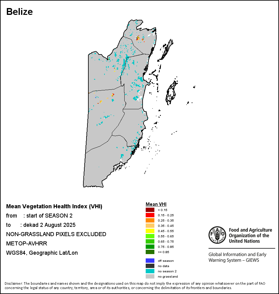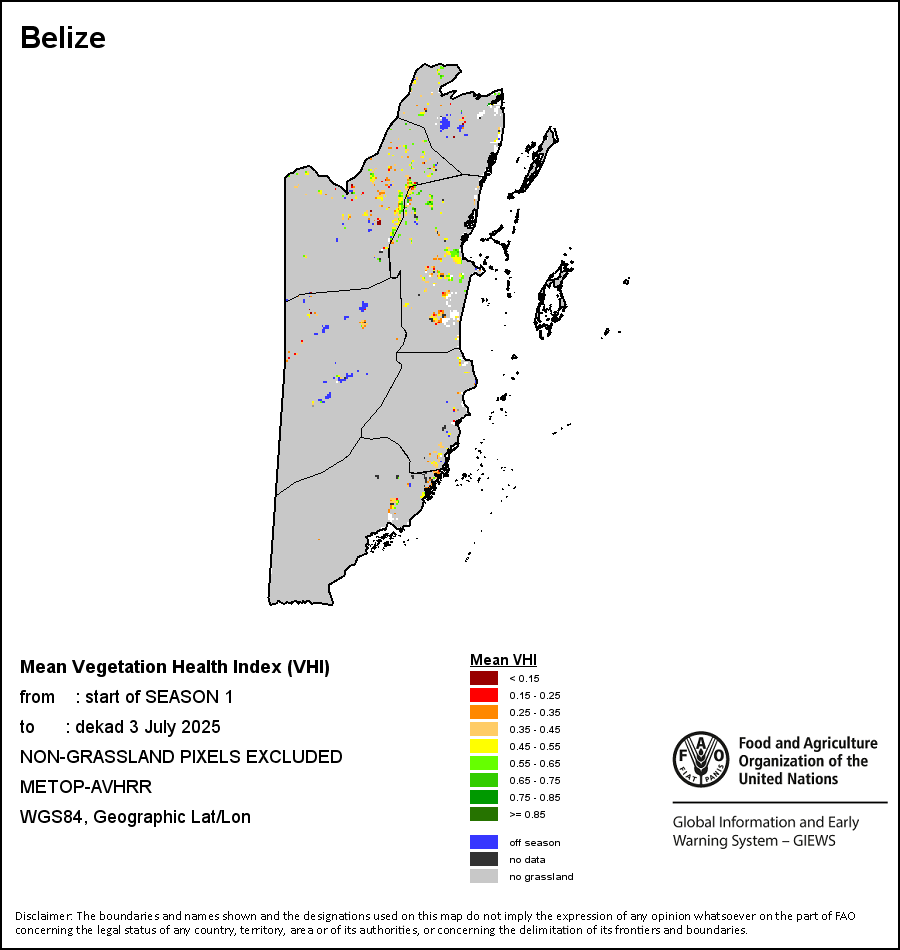 国别地图和图表显示的是最近36个月期间的季节、植被和降水指标。数据按每10天和每月呈现。   更多
