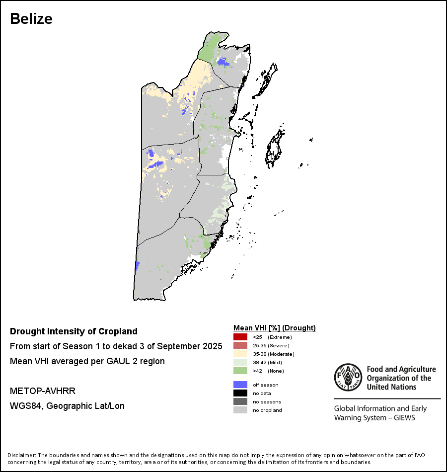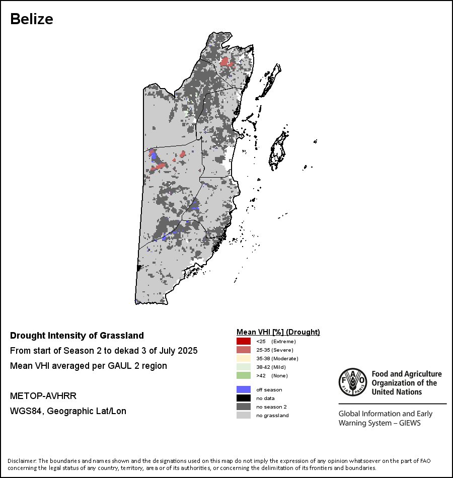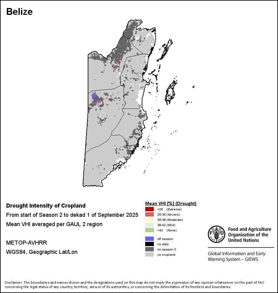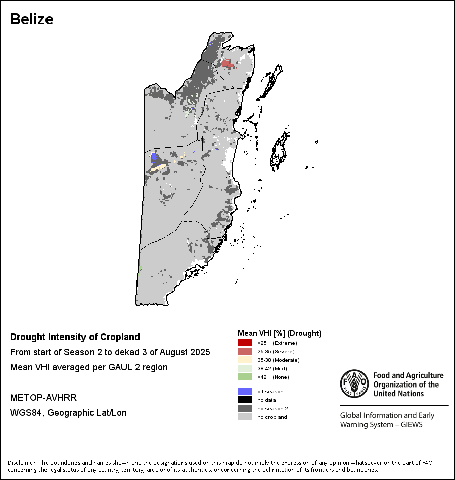 农业干旱依据其强度划分为四类:极端、严重、重度或轻度。干旱的强度通过各全球行政单位分层制度二级区域(GAUL 2)地区累积加权平均植被健康指数计算得出,意味着植被健康状况越差旱情就越严重。