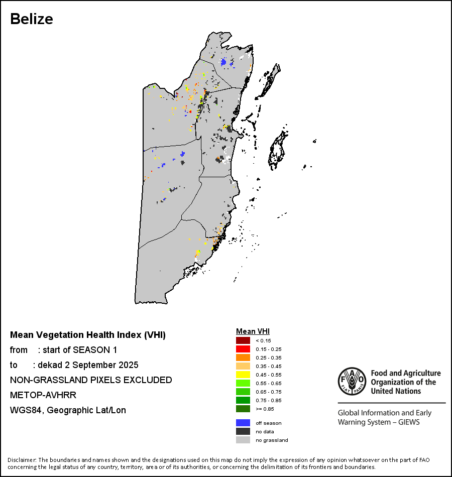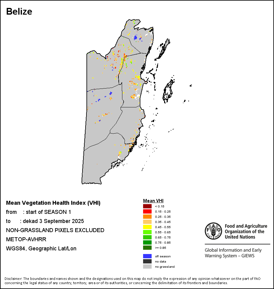 所有三项植被指标都是基于来自METOP-AVHRR遥感卫星分辨率1千米的10天(旬)植被数据(2007年及以后)得出的。1984-2006年期间的1千米分辨率数据得自NOAA-AVHRR16千米分辨率数据集。所有非洲国家的降水量估算(除佛得角和毛里求斯外)均取自NOAA/FEWSNet,其他国家则取自ECMWF。