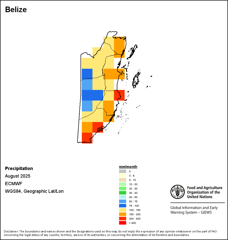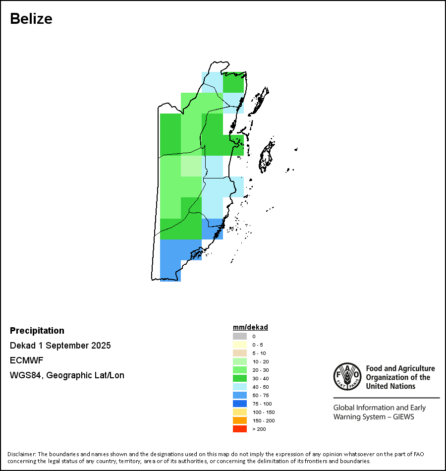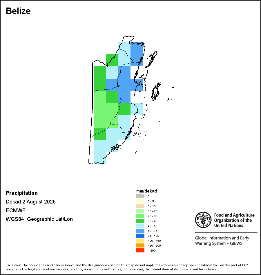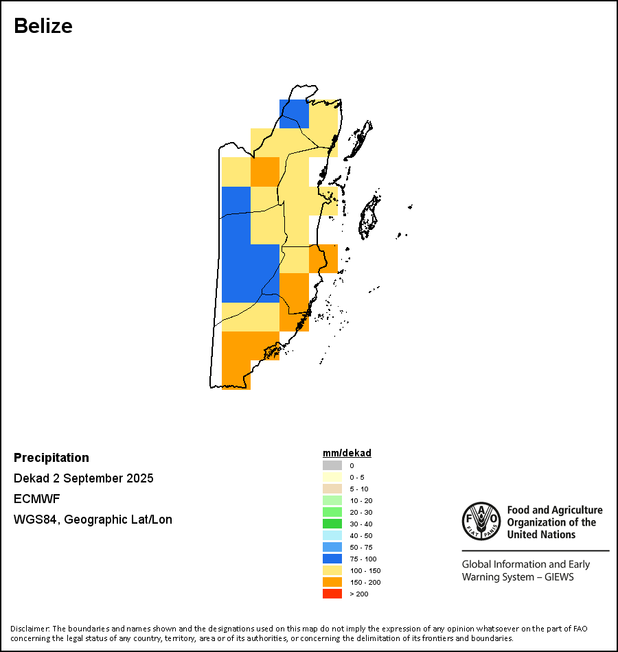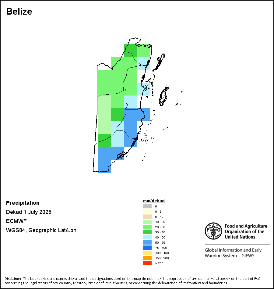该图谱显示了每一旬(十天)的累积降水量。 所有非洲国家的降水量估算(除佛得角和毛里求斯外)均取自NOAA/FEWSNet,其他国家则取自ECMWF。