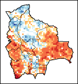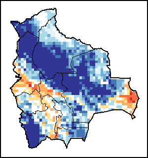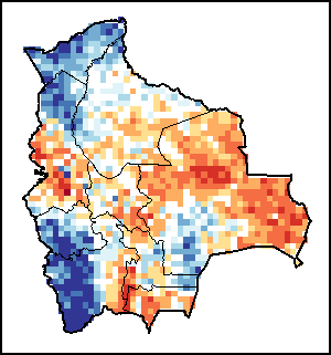 توضح الخريطة الاختلاف بين كمية الهطولات المطرية الراهنة ومعدلها. تقارَن مستويات الهطولات المطرية مع المعدل طويل الأجل الذي يشير إلى الفترة ما بين 1989-2015.