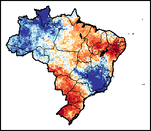 Карта иллюстрирует разницу между текущим объемом осадков и средним уровнем. Уровни осадков сравниваются с Долгосрочным Средним показателем (LTA), который относится к периоду 1989-2015 годов. Более теплые цвета определяют районы, с низким уровнем выпадения осадков, в то время как более холодные цвета относятся к районам, где осадки были выше среднего.