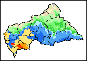 The Agricultural Stress Index (ASI) is a quick-look indicator that facilitates the early identification of cropped land with a high likelihood of water stress (drought). The Index is based on the integration of the Vegetation Health Index (VHI) in two dimensions that are critical in the assessment of a drought event in agriculture: temporal and spatial. The first step of the ASI calculation is a temporal averaging of the VHI, assessing the intensity and duration of dry periods occurring during the crop cycle at the pixel level; this calculation includes the use of crop coefficients, which introduces sensitivity of a crop to water stress during each phenological phase. The second step determines the spatial extent of drought events by calculating the percentage of pixels in arable areas with a VHI value below 35 percent (this value was identified as a critical threshold in assessing the extent of drought in previous research by Kogan, 1995). Each administrative area is classified according to the percentage of the affected area to facilitate the quick interpretation of results.