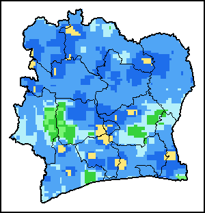 تصور الخرائط والمخططات البيانية المرسومة على مستوى البلد آخر 36 شهراً في للمؤشرات الموسمية والنباتية وتلك المتعلقة بالهطولات. وتمثل البيانات خلال فترة عشرة أيام وشهر. مد جميع المؤشرات النباتية الثلاثة على بيانات نباتية لعشرة أيام مأخوذة من حساس METOP-AVHRR بدقة 1 كم (2007 وما بعد). أما بيانات الفترة من 1984-2006 والتي هي أيضاً بدقة 1 كم فمأخوذة من مجموعة بيانات المقياس الإشعاعي المتقدم ذو الدقة العالية جدا التابع للإدارة الوطنية لدراسة المحيطات والغلاف الجوي بدقة 16 كم. وتؤخذ تقديرات الهطولات لكافة بلدان أفريقيا (ما عدا كابو فيردي وموريشوس) من شبكة بيانات الإدارة الوطنية لدراسة المحيطات والغلاف الجوي/نظام الإنذار المبكر بالمجاعة، أما بالنسبة للبلدين المتبقيين فتؤخذ من المركز الأوروبي للتنبؤات الجوية المتوسطة المدى. بفضل ازياد دقة مؤشرات الغطاء النباتي (من قبيل المؤشر الموحد لتباين الغطاء النباتي و مؤشر الغطاء النباتي) قياسًا بمؤشرات الهطول الأقل دقة، نجد أن عدد الوحدات التي يمكن توليد إحصاءات مناطقية صالحة لها على المستوى دون الوطني باستخدام مؤشرات الغطاء النباتي يكون أكبر من عدد الوحدات المتاحة لمؤشرات الهطول لدى بلدان معينة.