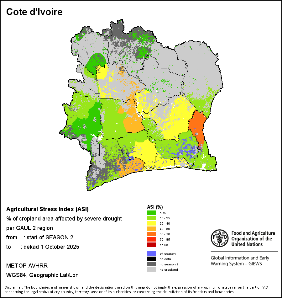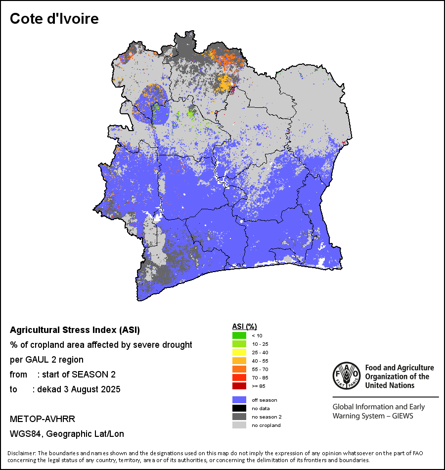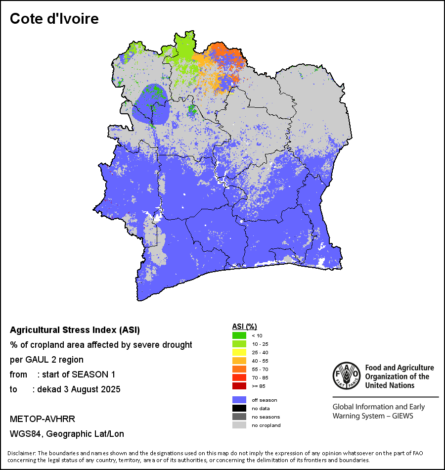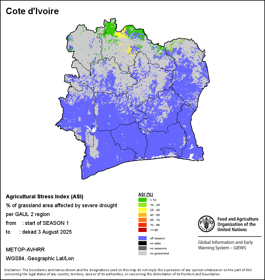 年度ASI显示的是某个行政区域内在整个农作季节受到旱情影响的耕地面积的百分比。 它与ASI的不同点在于ASI考查的是季节开局至当前十天的状况。