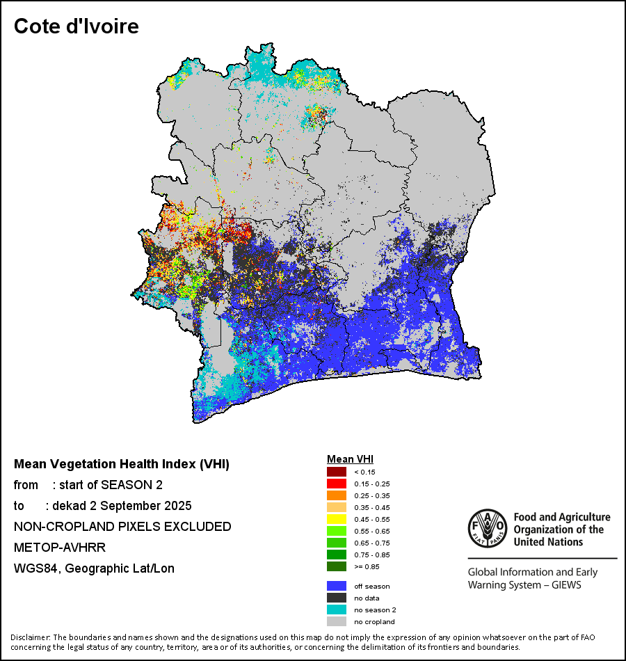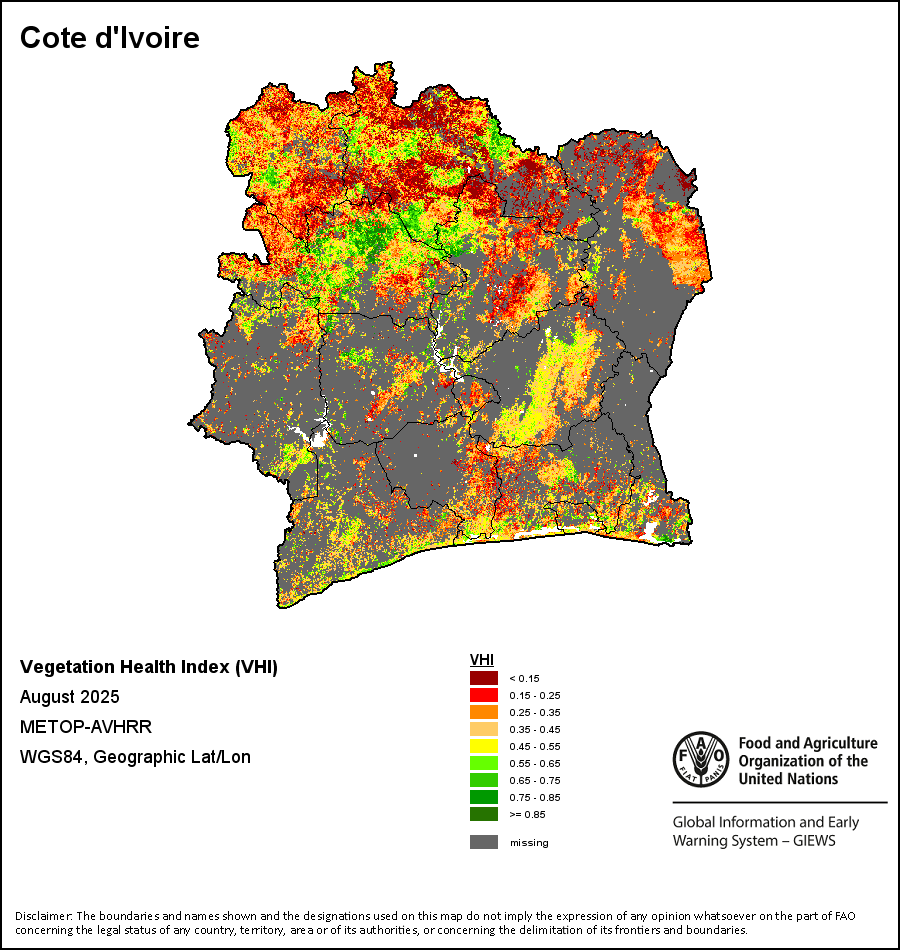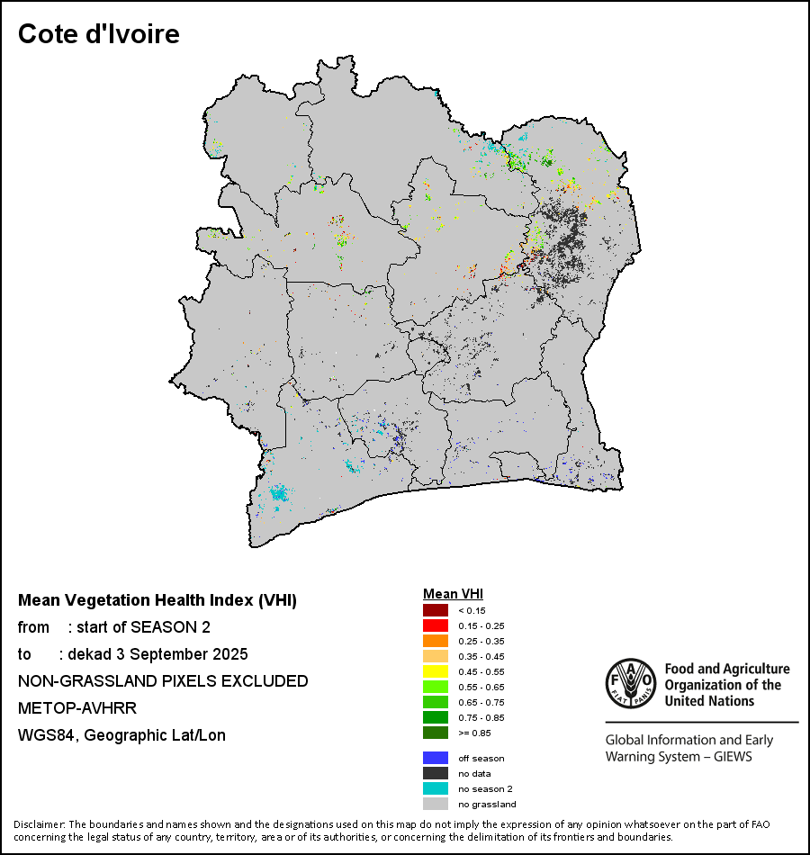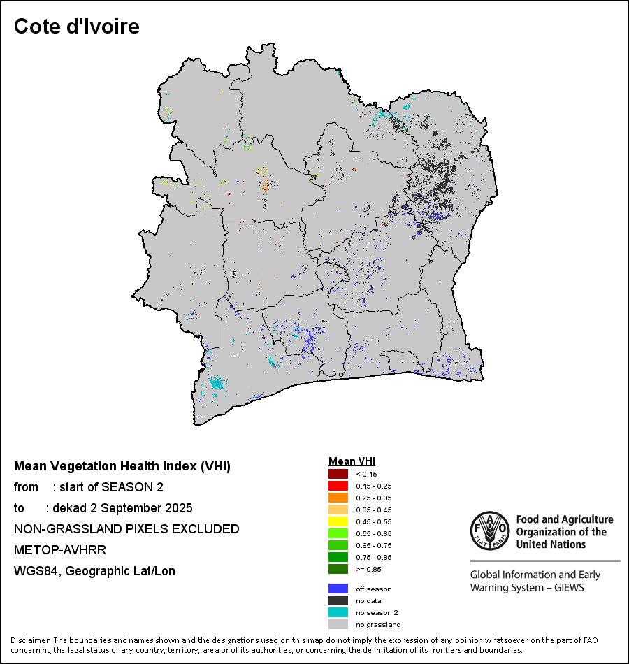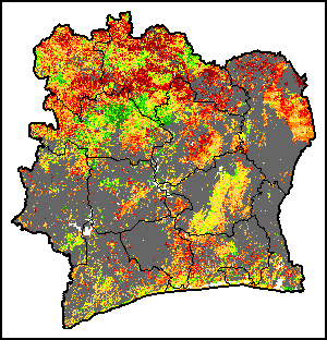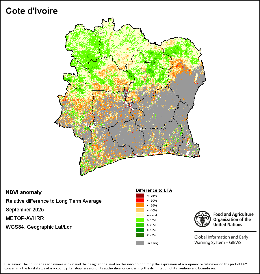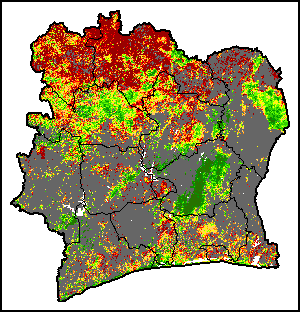 所有三项植被指标都是基于来自METOP-AVHRR遥感卫星分辨率1千米的10天(旬)植被数据(2007年及以后)得出的。1984-2006年期间的1千米分辨率数据得自NOAA-AVHRR16千米分辨率数据集。所有非洲国家的降水量估算(除佛得角和毛里求斯外)均取自NOAA/FEWSNet,其他国家则取自ECMWF。