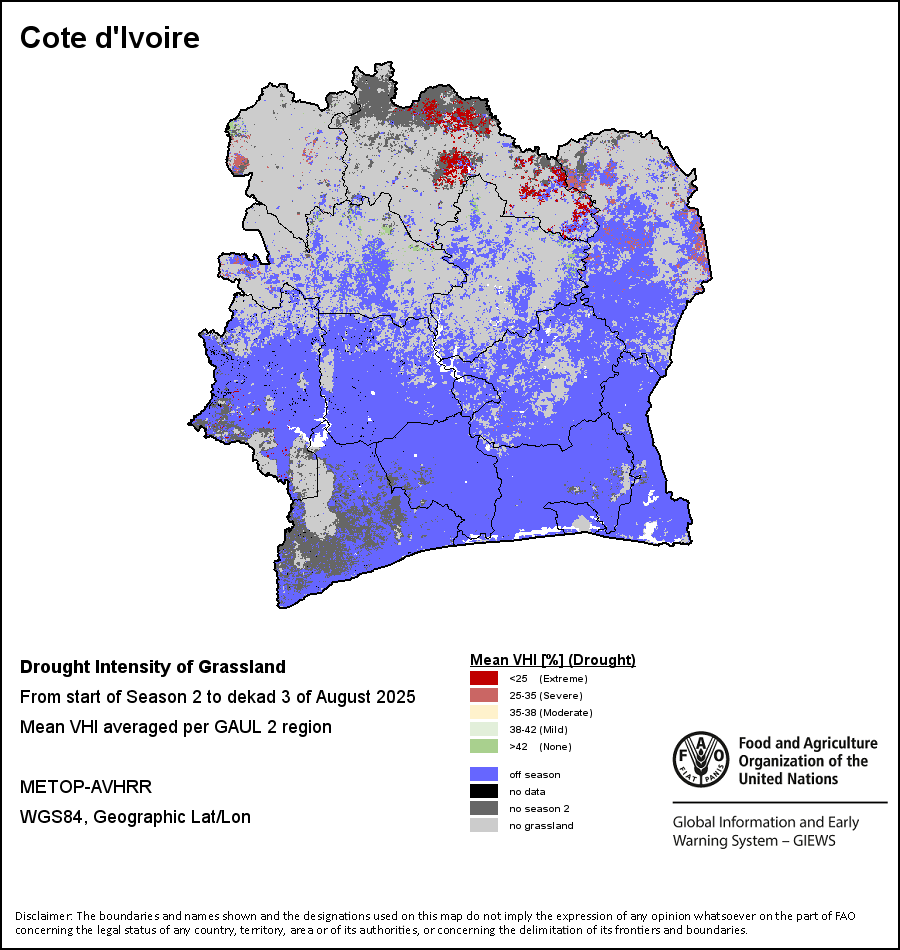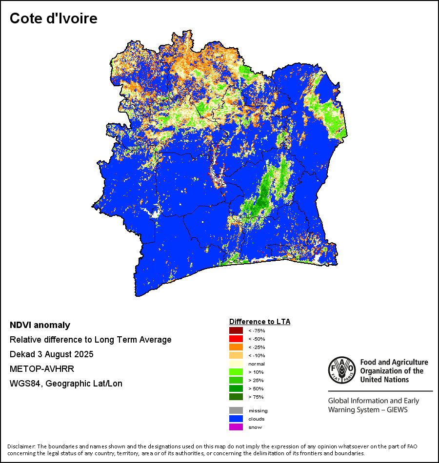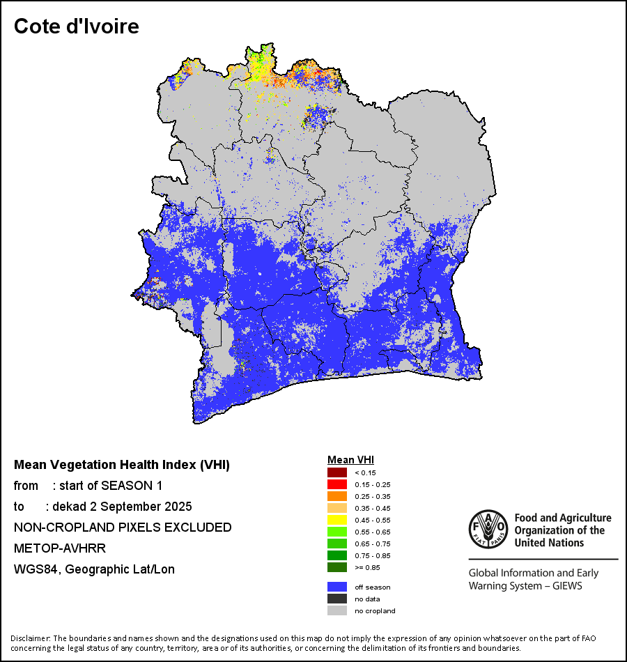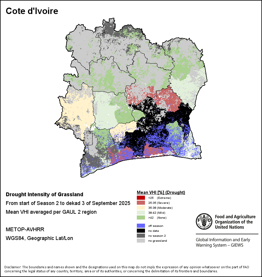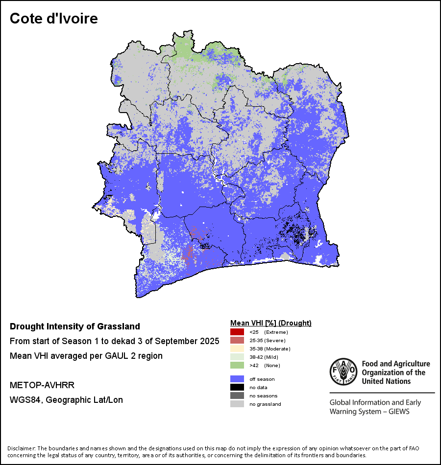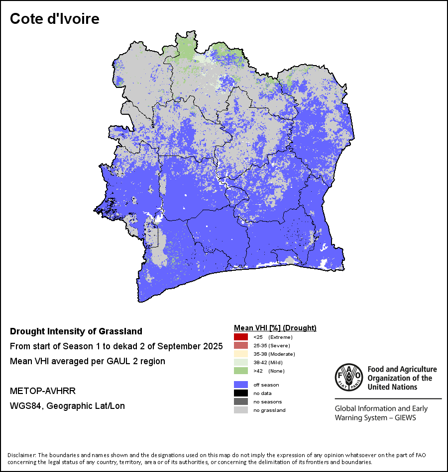 所有三项植被指标都是基于来自METOP-AVHRR遥感卫星分辨率1千米的10天(旬)植被数据(2007年及以后)得出的。1984-2006年期间的1千米分辨率数据得自NOAA-AVHRR16千米分辨率数据集。所有非洲国家的降水量估算(除佛得角和毛里求斯外)均取自NOAA/FEWSNet,其他国家则取自ECMWF。