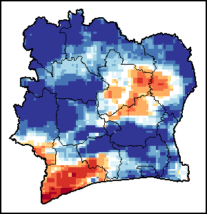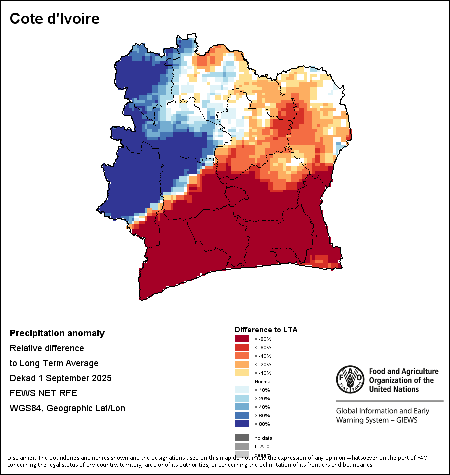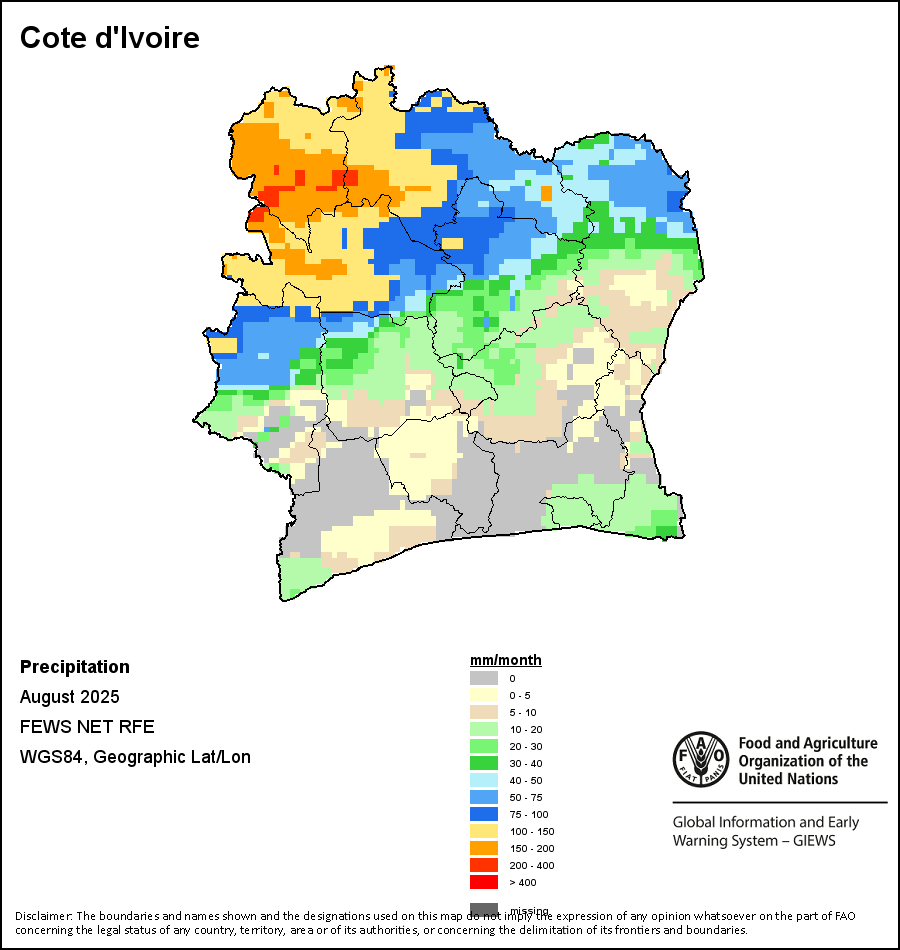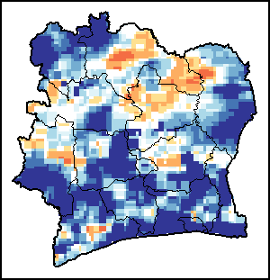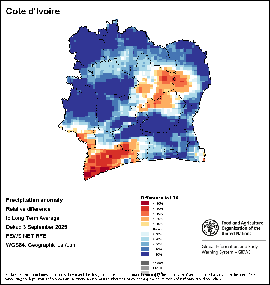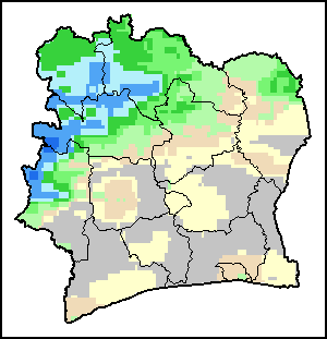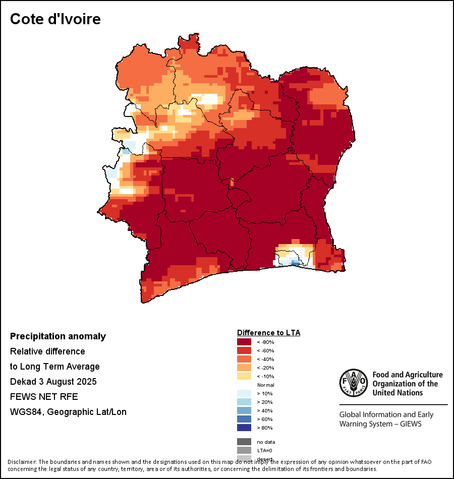 该图谱显示了每一旬(十天)的累积降水量。 所有非洲国家的降水量估算(除佛得角和毛里求斯外)均取自NOAA/FEWSNet,其他国家则取自ECMWF。