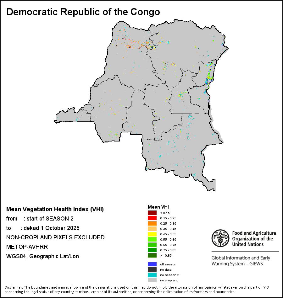يتيح متوسط مؤشر الصحة النباتية للمستخدم تقييم شدة الجفاف من بداية الموسم الزراعي، حيث يتحقق من صحة النبات وتأثير درجات الحرارة في حالة النبات. أما متوسط مؤشر الصحة النباتية فيمثل معدل قيم مؤشر الصحة النباتية المأخوذة كل عشرة أيام على امتداد الموسم الزراعي للمحصول وحتى تاريخه. ويأخذ بعين الاعتبار حساسية المحصول للإجهاد المائي خلال الموسم الزراعي ويحسب التأثير الزمني لنقص الرطوبة منذ بداية الموسم الزراعي وحتى فترة العشرة أيام الراهنة.