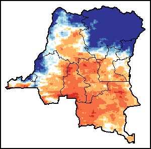 توضح الخريطة الاختلاف بين كمية الهطولات المطرية الراهنة ومعدلها. تقارَن مستويات الهطولات المطرية مع المعدل طويل الأجل الذي يشير إلى الفترة ما بين 1989-2015.