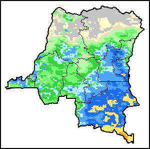 Les cartes et les graphiques au niveau des pays illustrent les indicateurs d’avancement de la campagne, de végétation et de pluviométrie au cours des 36 derniers mois. Les données sont présentées par décade et par mois. Les trois indicateurs de végétation sont basés sur les données relatives à la végétation pour 10 jours (décade) du capteur Metop-AVHRR par pixel de 1 km (à partir de 2007). Les données à 1 km de résolution pour la période 1984-2006 ont été dérivées des données du NOAA-AVHRR à 16 km de résolution. - Les estimations concernant les précipitations pour tous les pays africains (à l'exception du Cap Vert et de Maurice) proviennent du NOAA/FEWSNet, tandis que les données concernant les autres pays sont obtenues à partir du CEPMMT. Compte tenu de la résolution plus élevée des indicateurs de végétation (ex. NDVI, VHI) par rapport à celle des indicateurs de précipitations, plus grossiers, le nombre d’unités infranationales pour lesquelles des statistiques zonales valides peuvent être produites à partir des indices de végétation est, dans certains pays, supérieur à celui obtenu à partir des indicateurs de précipitations.
