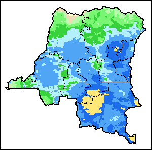 Индекс здоровья растительности (VHI) иллюстрирует серьезность засухи, основанной на здоровье растительности и влиянии температуры на состояние растений. VHI является составным индексом и элементарным индикатором, используемым для вычисления ASI. Он сочетает в себе как Индекс Состояния Растительности (VCI), так и Индекс Состояния Температуры (TCI). TCI рассчитывается с использованием аналогичного уравнения с VCI, но связывает текущую температуру с долгосрочным максимумом и минимумом, так как предполагается, что более высокие температуры, как правило, вызывают ухудшение состояния растительности. Например, уменьшение VHI будет означать относительно слабое состояние растительности и более высокие температуры, означающее ухудшение состояния растительности, что в течение более длительного периода будет свидетельствовать о засухе. Изображения VHI вычисляются для двух основных сезонов и трех модальностей: по-декадный, ежемесячный и годовой. |