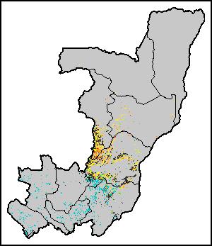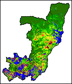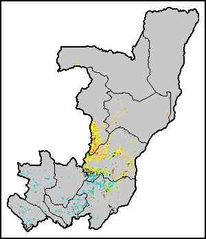 Agricultural droughts are classified by their intensity and are categorized into four classes: Extreme, Severe, Moderate or Mild. The intensity of drought is calculated through the Weighted Mean Vegetation Health Index, indicating that the poorer the vegetation health the more severe the drought. The Annual summary of Drought Intensity allows the user to assess the overall intensity of drought for an entire growing season.