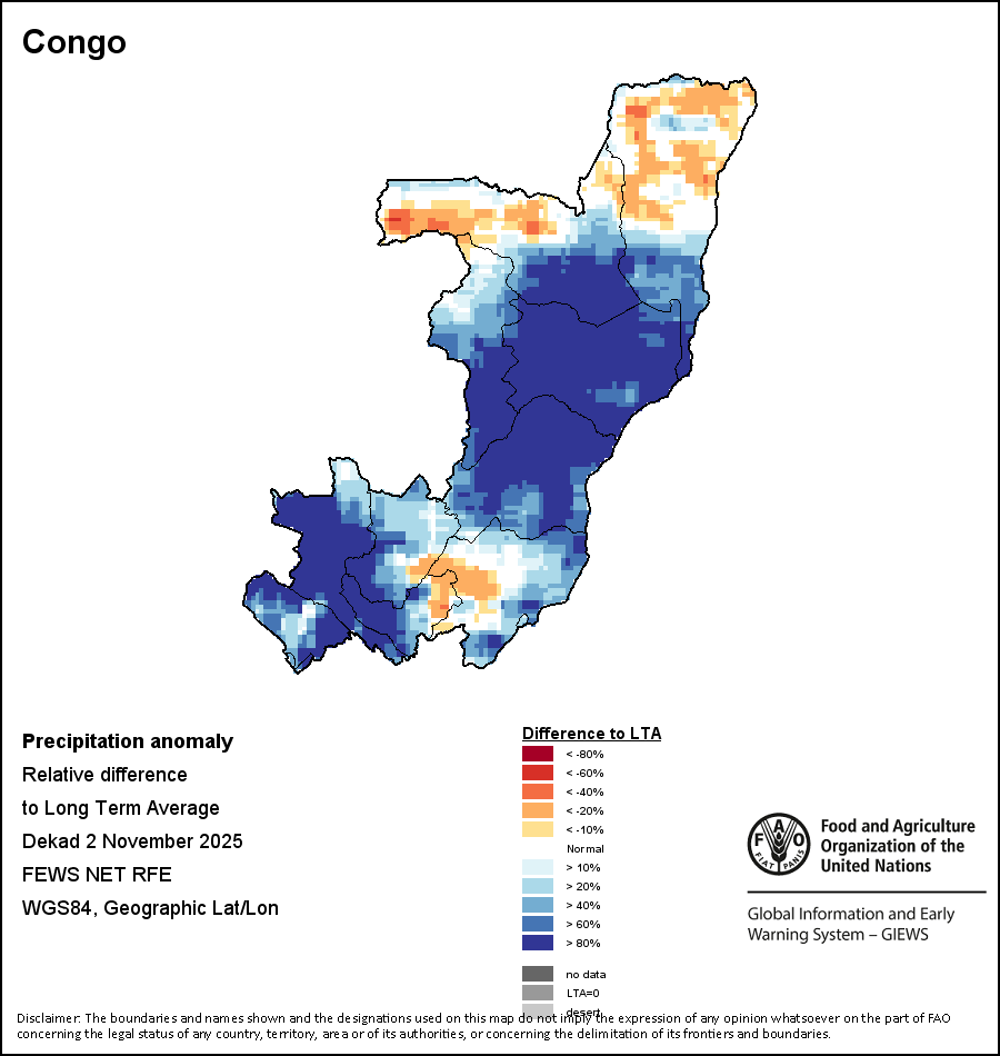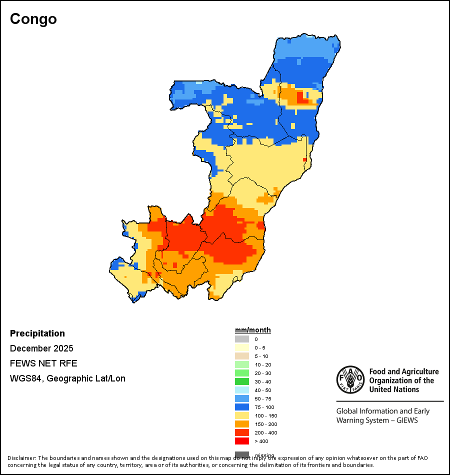 The boundaries and names shown and the designations used on the maps do not imply the expression of any opinion whatsoever on the part of FAO concerning the legal status of any country, territory, city or area or of its authorities, or concerning the delimitation of its frontiers and boundaries.