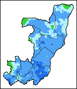 The Annual Weighted Mean Vegetation Health Index (Weighted Mean VHI) allows the user to assess the overall severity of drought for an entire growing season, examining the vegetation health and the influence of temperature on plant conditions. The Annual Weighted Mean VHI takes into account the sensitivity of a crop to water stress over its growing season, and calculates the temporal impact of moisture deficits and temperature over the complete growing season.