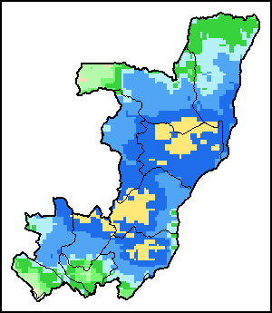 Los mapas y gráficos nacionales representan el último periodo de 36 meses de los indicadores estacionales, de vegetación y de precipitación. Los datos se presentan por periodos de 10 días y por meses. Los tres indicadores de vegetación se basan en datos de vegetación registrados cada diez días por el sensor METOP-AVHRR con una resolución de 1km (2007 y posterior). Los datos con una resolución de 1km del período 1984-2006 se extrapolaron a partir del conjunto de datos NOAA-AVHRR con 16km de resolución. Las estimaciones de precipitación de todos los países africanos (excepto Cabo Verde y Mauricio) se obtienen de NOAA/FEWSNet (16km de resolución), mientras que para los restantes países los datos se obtienen Centro Europeo de Predicción Meteorológica a Plazo Medio (ECMWF siglas en Inglés, 25km de resolución). Debido a la mayor resolución de los indicadores de vegetación (p.ej., NDVI, VHI) en comparación con los indicadores de precipitación de resolución más gruesa, el número de unidades subnacionales para las que se pueden generar estadísticas zonales válidas para los índices de vegetación es mayor que el número de unidades para los indicadores de precipitación en algunos países.