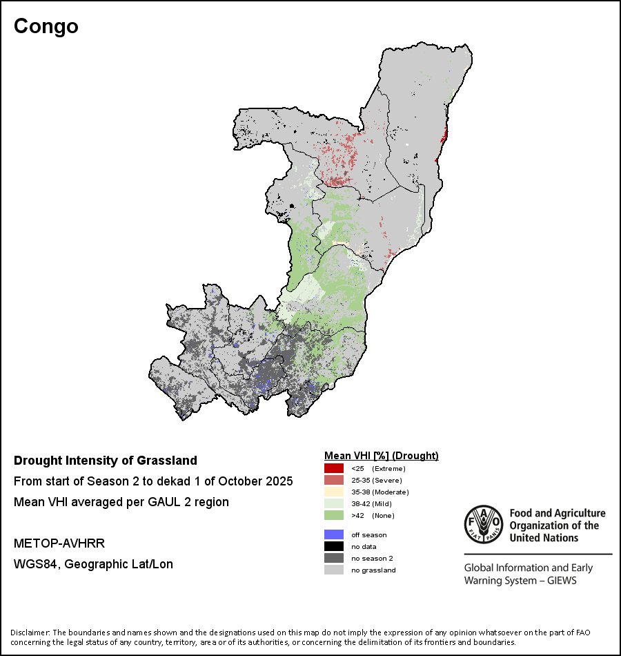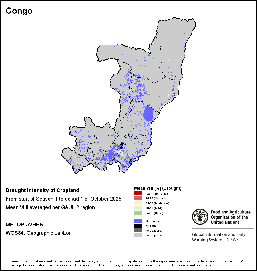 农业干旱依据其强度划分为四类:极端、严重、重度或轻度。干旱的强度通过各全球行政单位分层制度二级区域(GAUL 2)地区累积加权平均植被健康指数计算得出,意味着植被健康状况越差旱情就越严重。