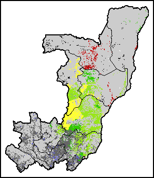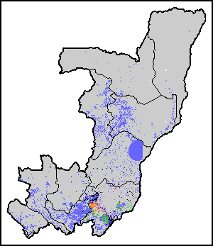 植被健康指数(VHI)根据植被健康状况以及气温对作物状况的影响情况显示干旱的严重程度。 VHI是一项综合指数,是用于计算ASI的基础性指标。它结合了植被状况指数(VCI)和气温状况指数(TCI)。TCI的计算采用了与VCI类似的方程,但它把当前气温与长期最高和最低值联系起来,因为一个假定前提是气温越高就倾向于造成植被状况恶化。比方说,VHI指数下降就意味着植被状况相对较差,而气温越高则意味着植被状况受到胁迫,较长时间延续则成为干旱的指征。VHI映像针对两个主要季节进行计算并分为三种时间模式:旬度、月度和年度。
