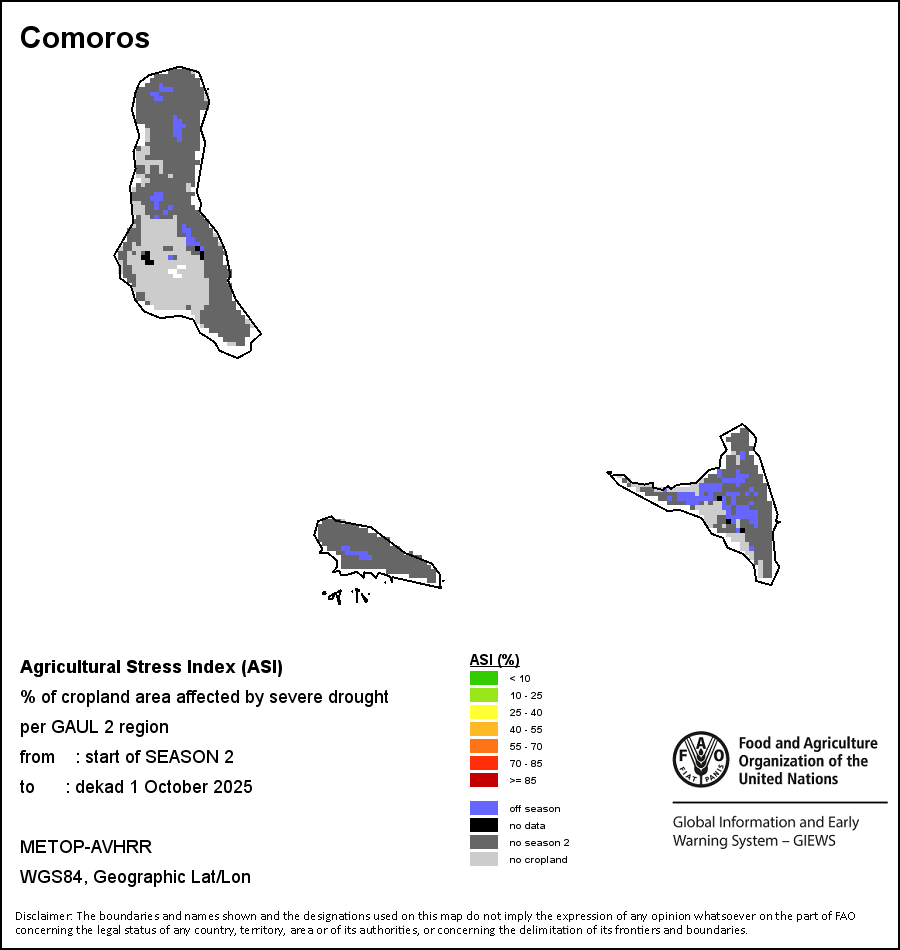 يصور مؤشر الإجهاد الزراعي السنوي النسبة المئوية من الأراضي الزراعية المتأثرة بالجفاف على امتداد الموسم الزراعي بأكمله ضمن منطقة إدارية ما. ويختلف هذا المؤشر السنوي عن مؤشر الإجهاد الزراعي الذي يعتمد على أحوال الجفاف منذ بداية الموسم وحتى فترة العشرة أيام الراهنة.