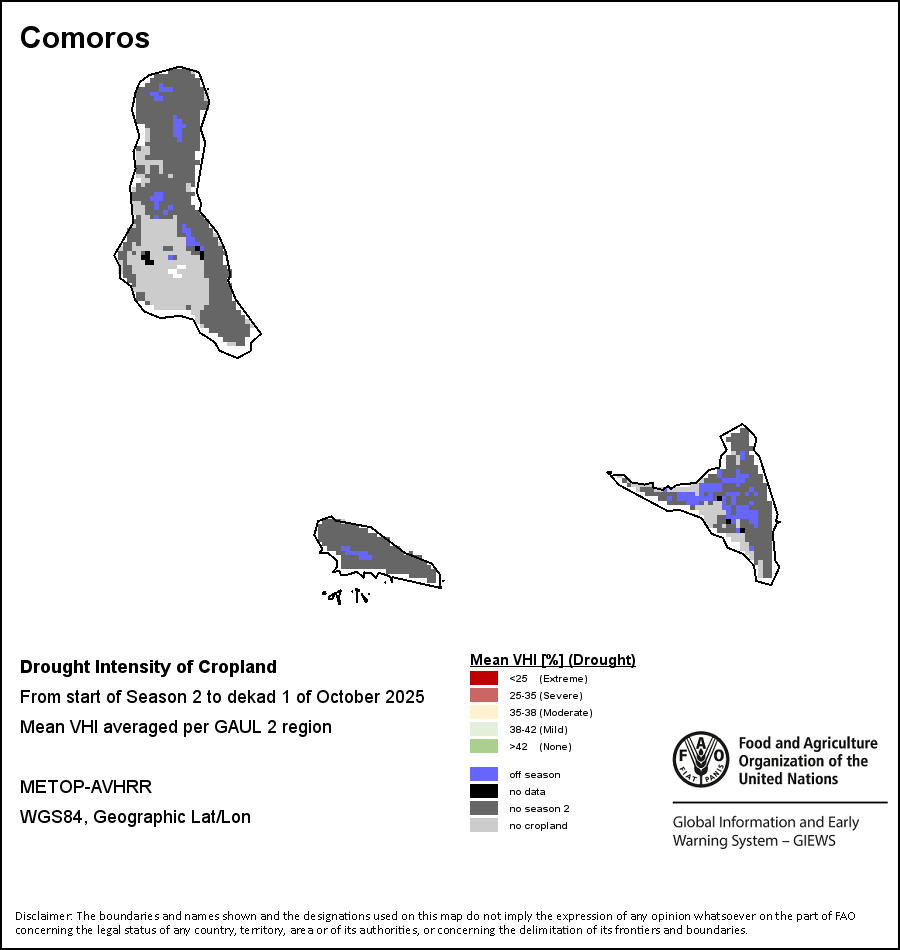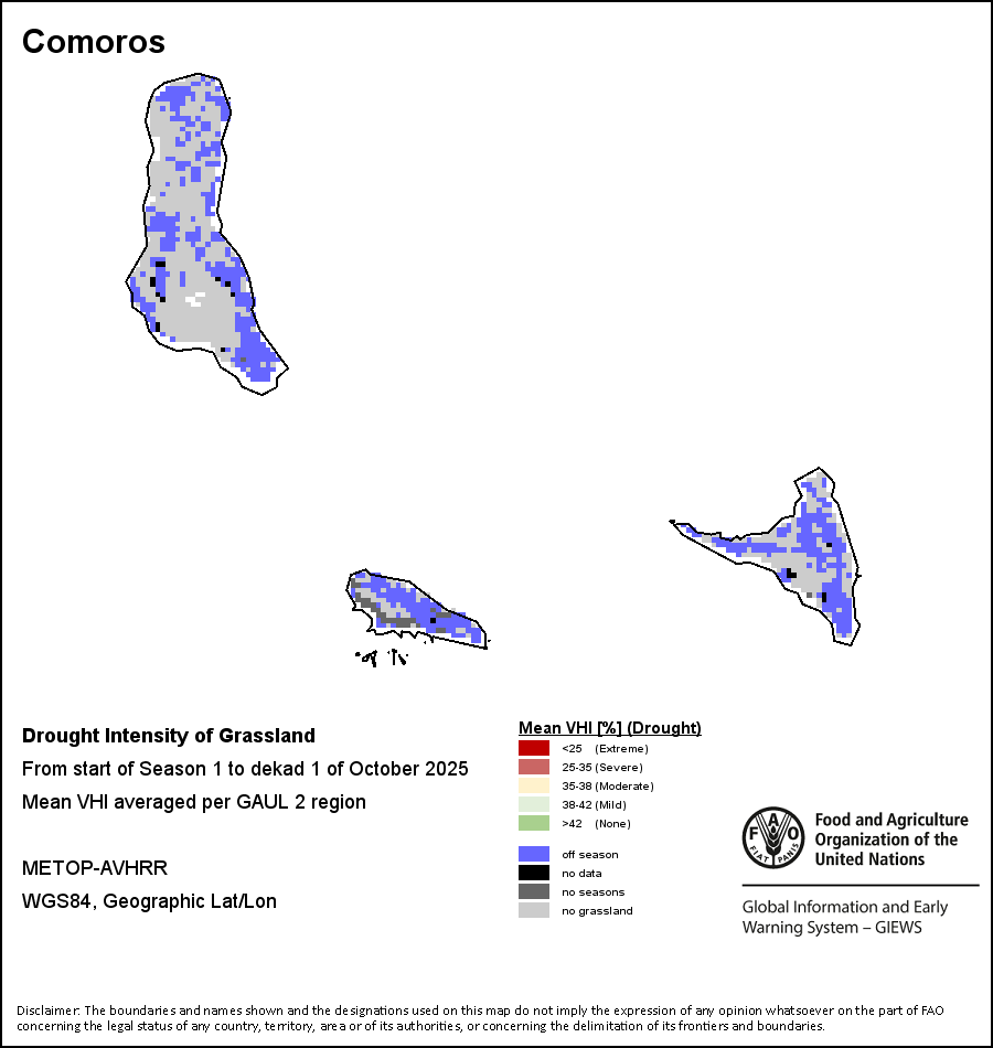 مد جميع المؤشرات النباتية الثلاثة على بيانات نباتية لعشرة أيام مأخوذة من حساس METOP-AVHRR بدقة 1 كم (2007 وما بعد). أما بيانات الفترة من 1984-2006 والتي هي أيضاً بدقة 1 كم فمأخوذة من مجموعة بيانات المقياس الإشعاعي المتقدم ذو الدقة العالية جدا التابع للإدارة الوطنية لدراسة المحيطات والغلاف الجوي بدقة 16 كم. وتؤخذ تقديرات الهطولات لكافة بلدان أفريقيا (ما عدا كابو فيردي وموريشوس) من شبكة بيانات الإدارة الوطنية لدراسة المحيطات والغلاف الجوي/نظام الإنذار المبكر بالمجاعة، أما بالنسبة للبلدين المتبقيين فتؤخذ من المركز الأوروبي للتنبؤات الجوية المتوسطة المدى.