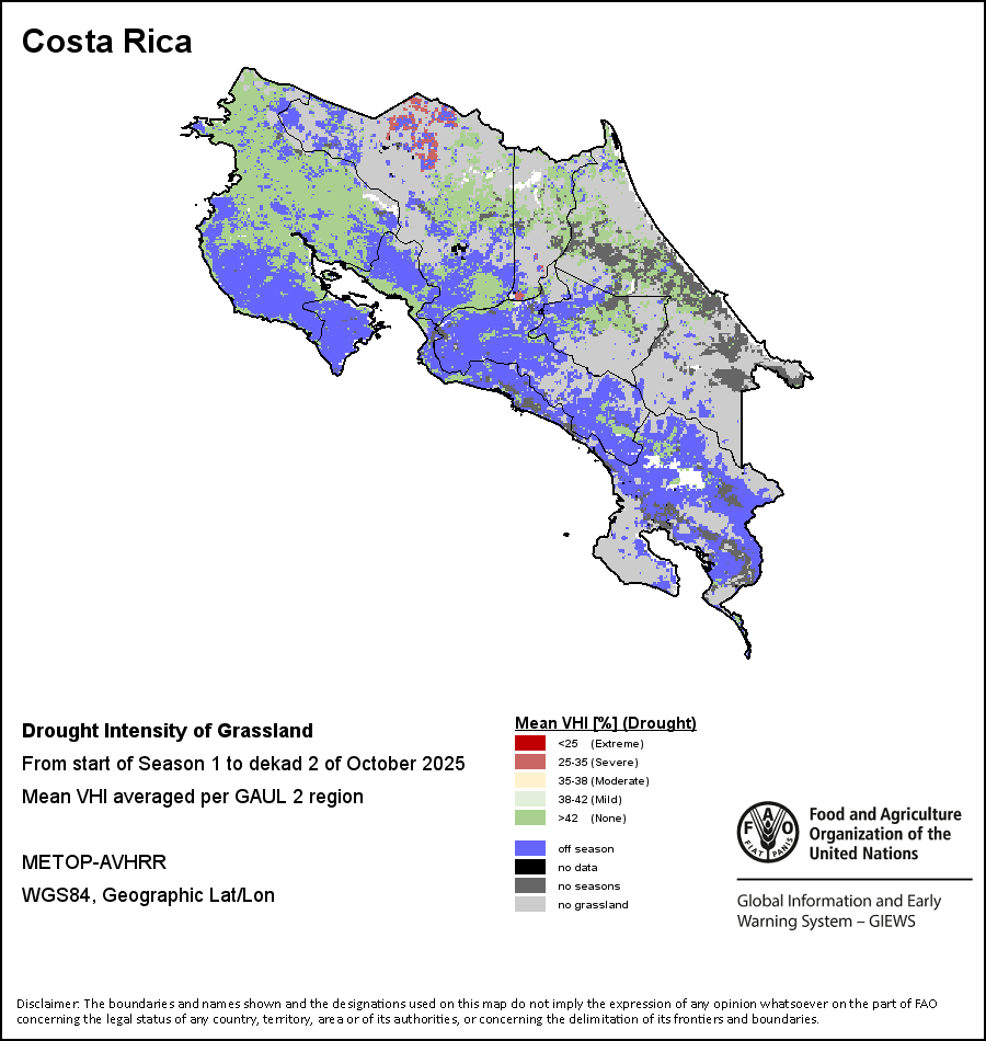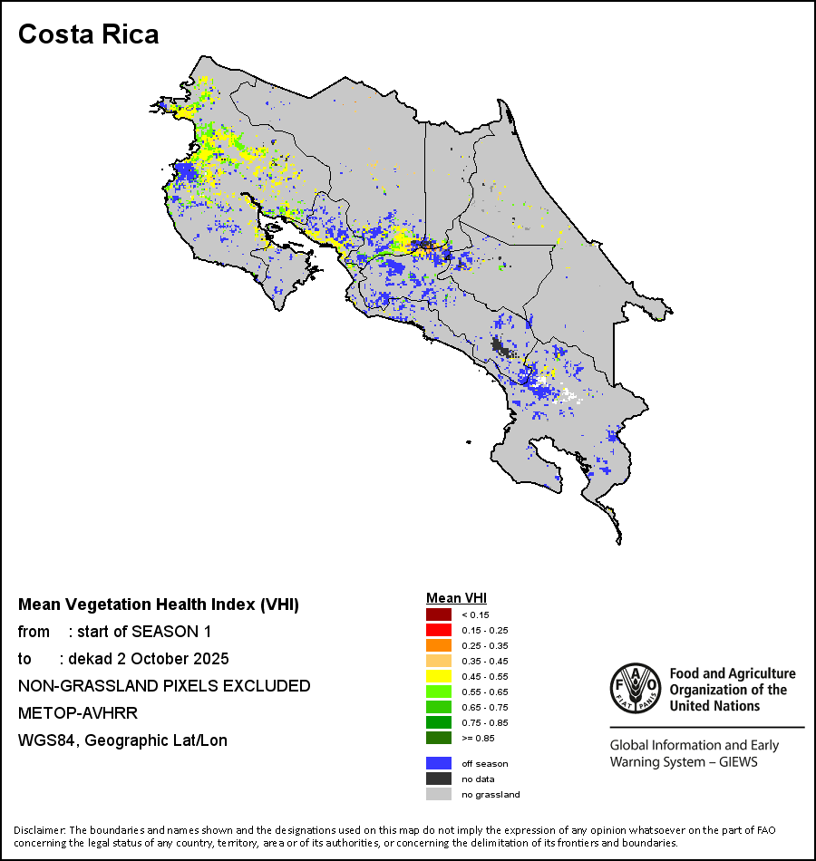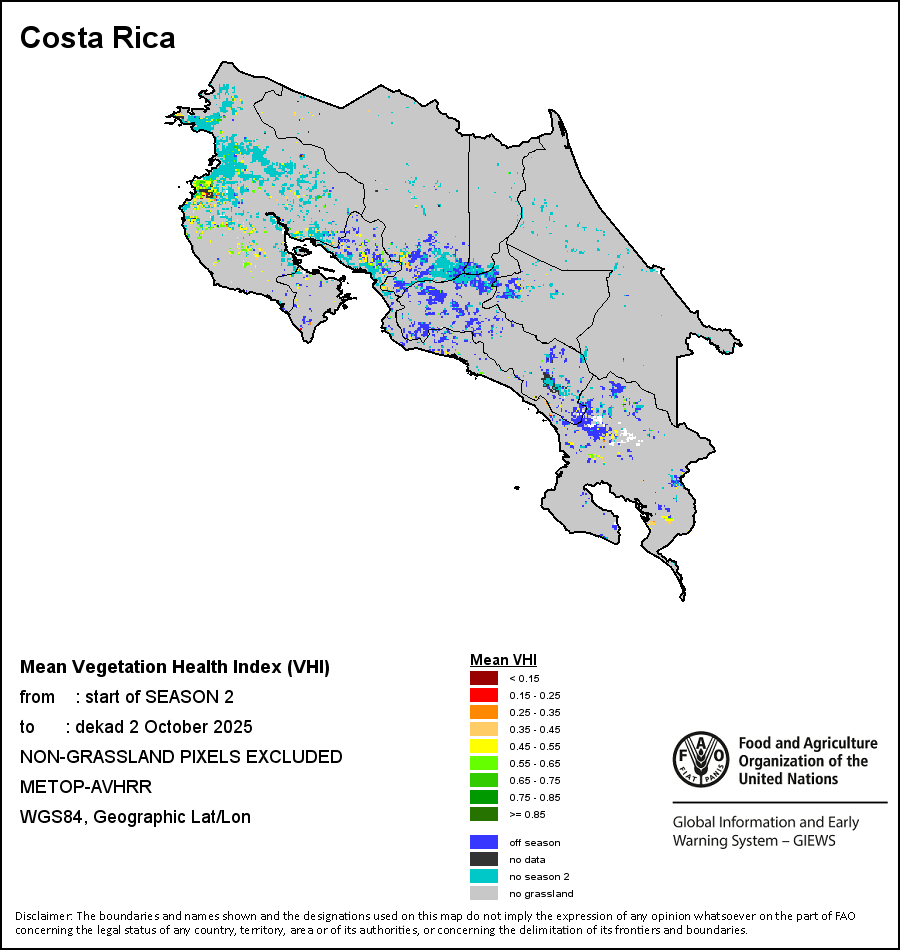 The country level maps and graphs depict the latest 36-month period of the seasonal, vegetation and precipitation indicators. The data is presented by dekad and month.   More