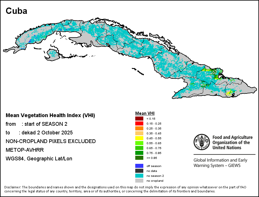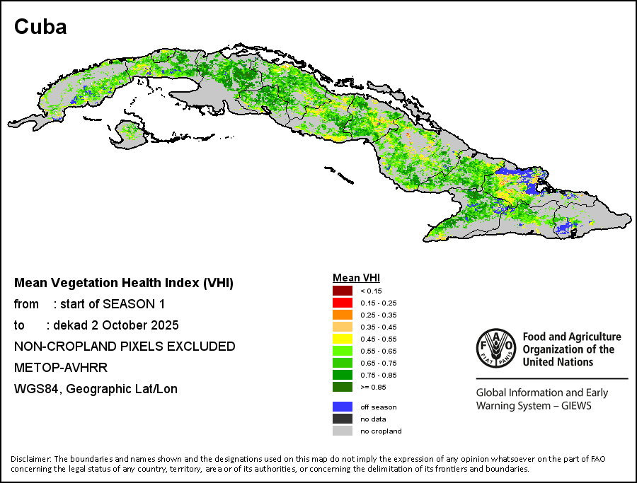 End of Season (EOS) indicates when crop/grass has reached physiological maturity, defined as the date when the descending NDVI-curve crosses NDVIe, This date does not necessarily correspond to the harvest period.