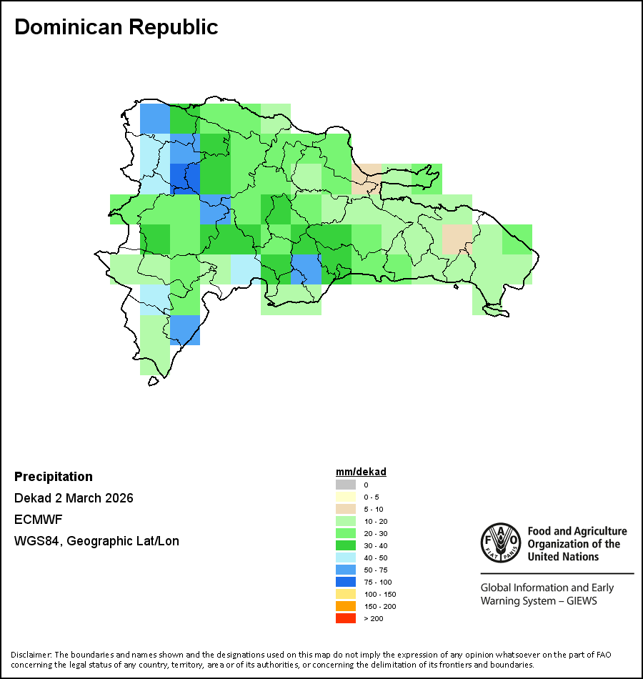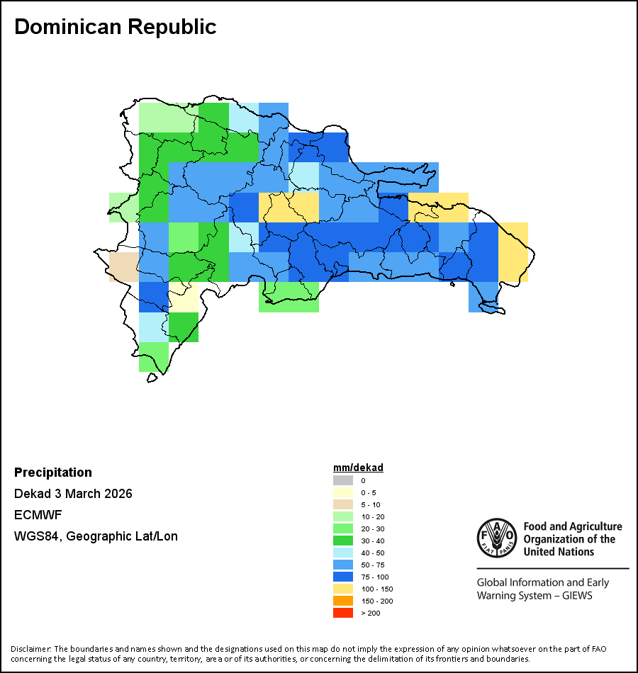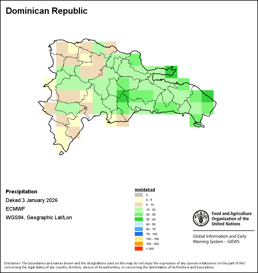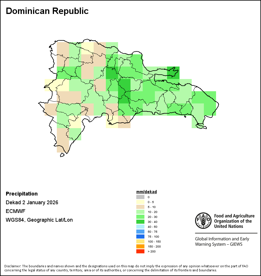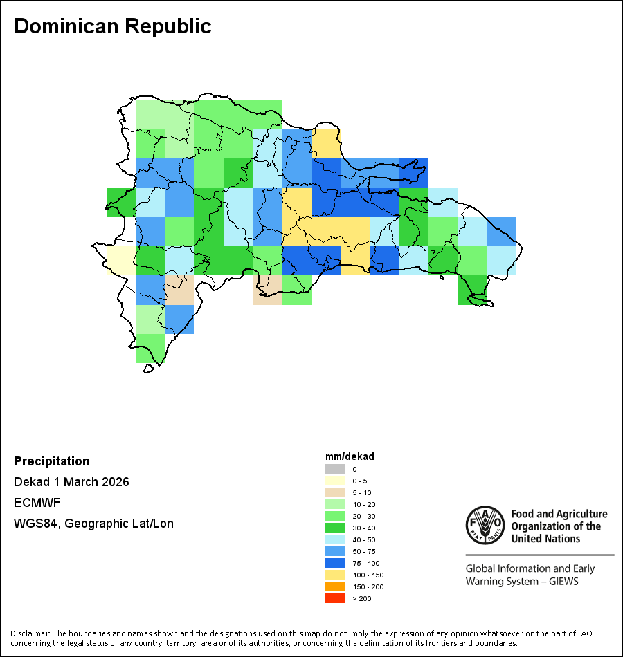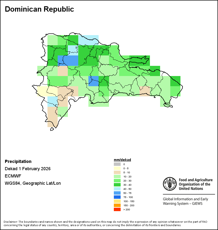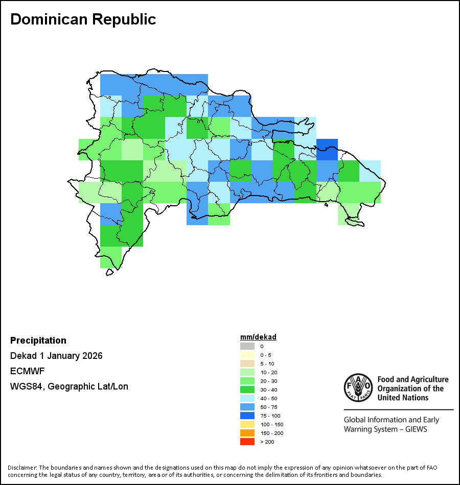 تصور الخرائط والمخططات البيانية المرسومة على مستوى البلد آخر 36 شهراً في للمؤشرات الموسمية والنباتية وتلك المتعلقة بالهطولات. وتمثل البيانات خلال فترة عشرة أيام وشهر. مد جميع المؤشرات النباتية الثلاثة على بيانات نباتية لعشرة أيام مأخوذة من حساس METOP-AVHRR بدقة 1 كم (2007 وما بعد). أما بيانات الفترة من 1984-2006 والتي هي أيضاً بدقة 1 كم فمأخوذة من مجموعة بيانات المقياس الإشعاعي المتقدم ذو الدقة العالية جدا التابع للإدارة الوطنية لدراسة المحيطات والغلاف الجوي بدقة 16 كم. وتؤخذ تقديرات الهطولات لكافة بلدان أفريقيا (ما عدا كابو فيردي وموريشوس) من شبكة بيانات الإدارة الوطنية لدراسة المحيطات والغلاف الجوي/نظام الإنذار المبكر بالمجاعة، أما بالنسبة للبلدين المتبقيين فتؤخذ من المركز الأوروبي للتنبؤات الجوية المتوسطة المدى. بفضل ازياد دقة مؤشرات الغطاء النباتي (من قبيل المؤشر الموحد لتباين الغطاء النباتي و مؤشر الغطاء النباتي) قياسًا بمؤشرات الهطول الأقل دقة، نجد أن عدد الوحدات التي يمكن توليد إحصاءات مناطقية صالحة لها على المستوى دون الوطني باستخدام مؤشرات الغطاء النباتي يكون أكبر من عدد الوحدات المتاحة لمؤشرات الهطول لدى بلدان معينة.