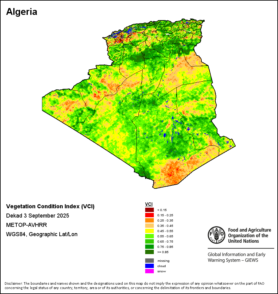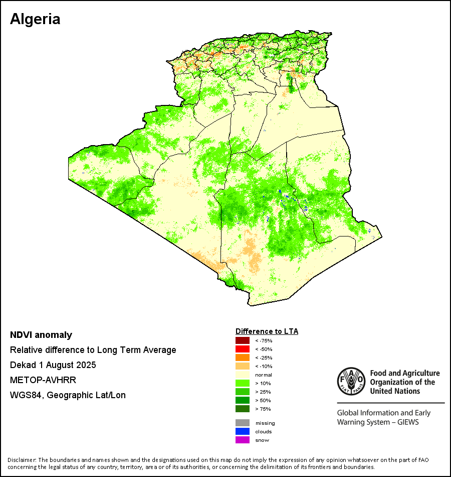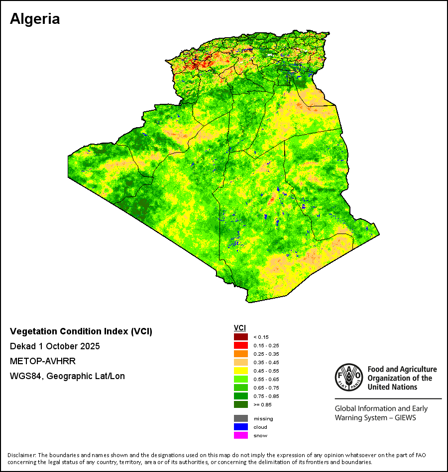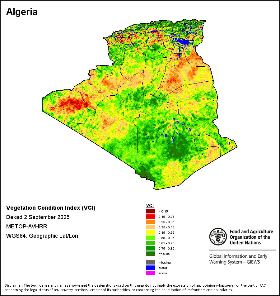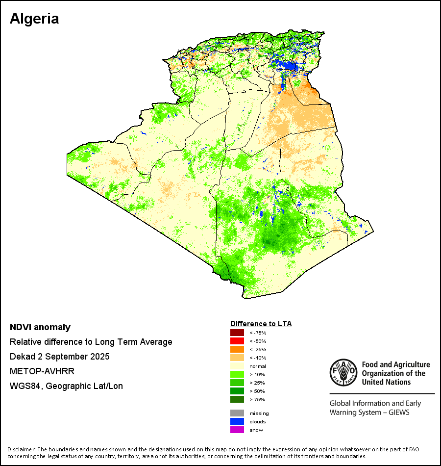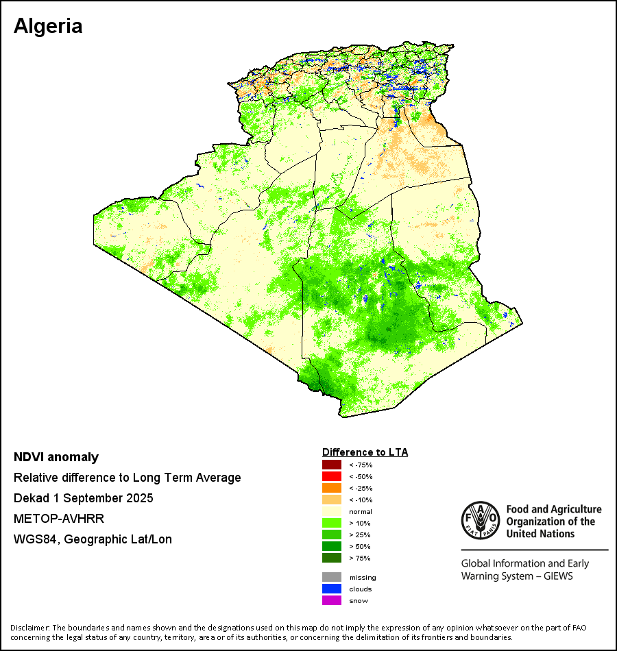 所有三项植被指标都是基于来自METOP-AVHRR遥感卫星分辨率1千米的10天(旬)植被数据(2007年及以后)得出的。1984-2006年期间的1千米分辨率数据得自NOAA-AVHRR16千米分辨率数据集。所有非洲国家的降水量估算(除佛得角和毛里求斯外)均取自NOAA/FEWSNet,其他国家则取自ECMWF。