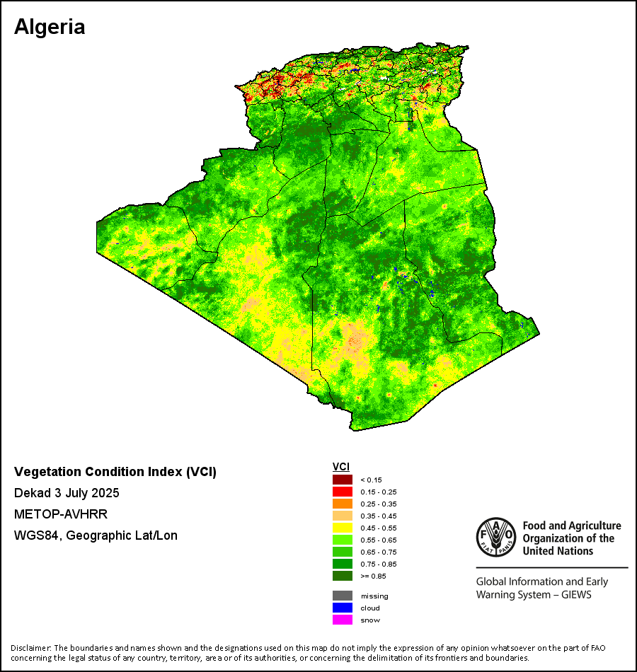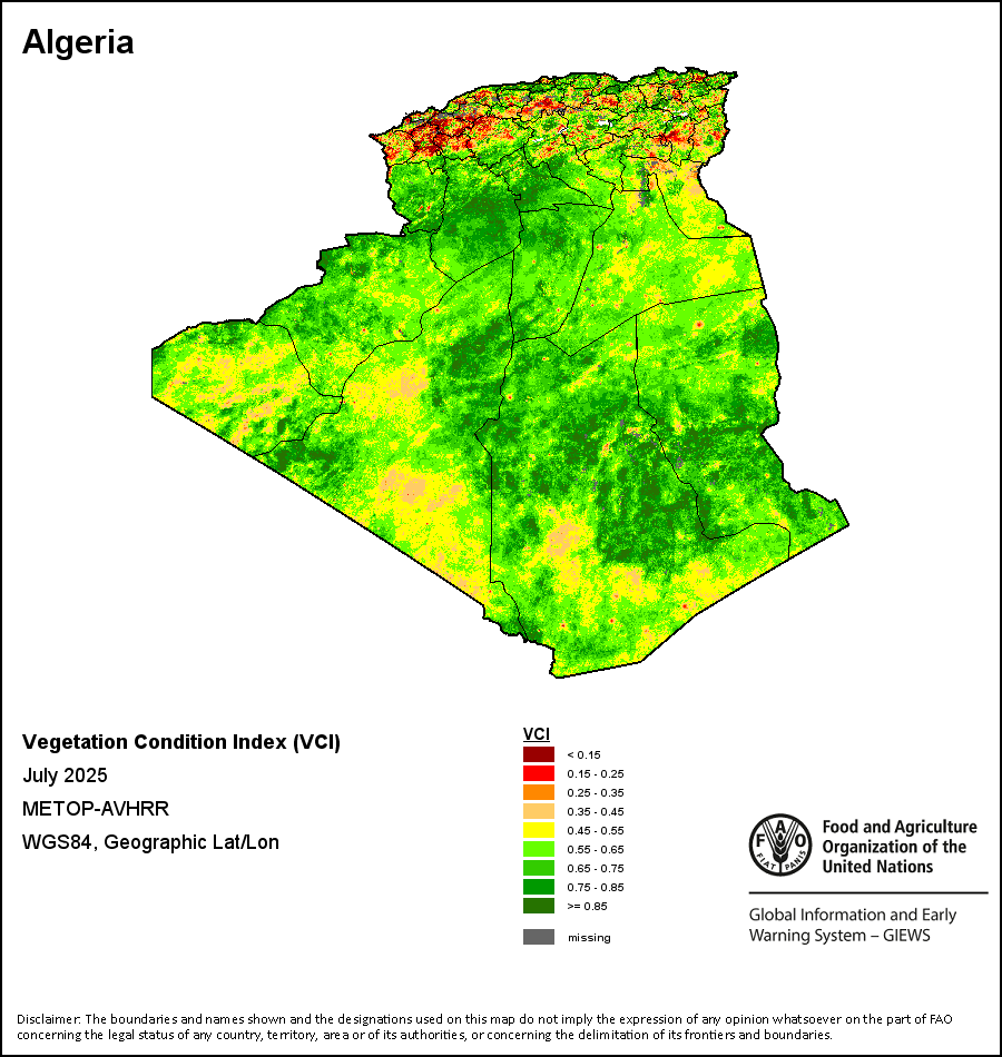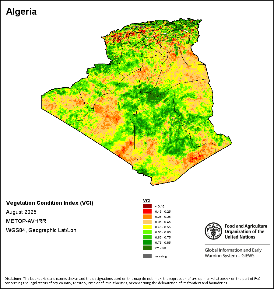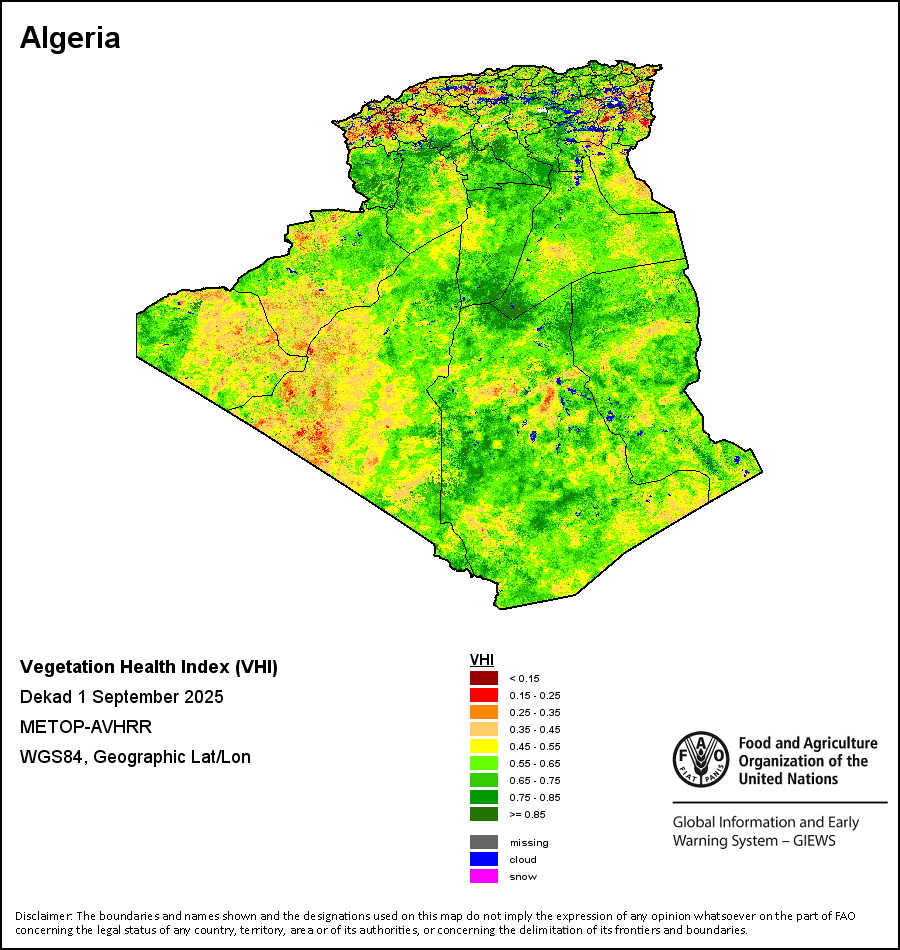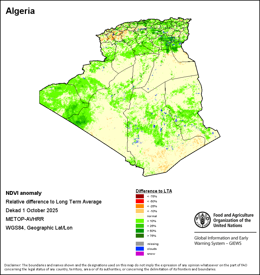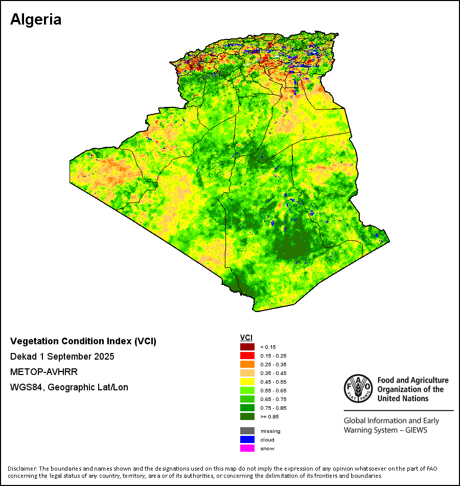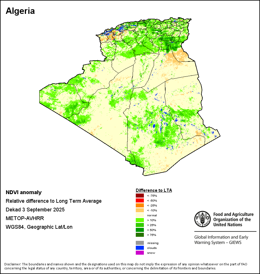 所有三项植被指标都是基于来自METOP-AVHRR遥感卫星分辨率1千米的10天(旬)植被数据(2007年及以后)得出的。1984-2006年期间的1千米分辨率数据得自NOAA-AVHRR16千米分辨率数据集。所有非洲国家的降水量估算(除佛得角和毛里求斯外)均取自NOAA/FEWSNet,其他国家则取自ECMWF。